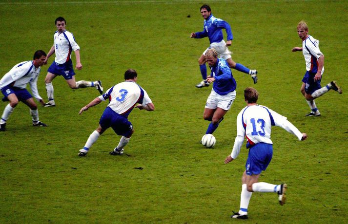 Engin lognmolla í kringum Eið Smára - myndir Jón Hákon Halldórsson skrifar 4. maí 2010 13:00 Það hefur engin lognmolla ríkt um Eið Smára Guðjohnsen knattspyrnumann á undanförnum misserum. Að öðrum ólöstuðum má segja að fáir, ef nokkur íslenskur knattspyrnumaður, hafi átt glæstari knattspyrnuferil en Eiður. Það eru hins vegar frásagnir af persónulegum málum hans sem hafa ekki síður vakið athygli. Nýjasta dæmið er frásögn Daily Star af meintri nasistakveðju Eiðs Smára. Blaðið hefur reyndar fjarlægt fréttina af vef sínum af ótta við málaferli. Þá hafa breskir fjölmiðlar sagt fréttir af meintu framhjáhaldi hans. Eiður stefndi jafnframt DV fyrir fréttir af hundruð milljóna króna tapi á fjárfestingum sem blaðið sagði að Glitnir hafi meðal annars fjármagnað viðskiptin. Hér að neðan má sjá feril Eið Smára Guðjohnsen í máli og myndum.Eiður var ungur þegar að hann byrjaði að æfa knattspyrnu.Eiður var valinn íþróttamaður ársins 2005.Eiður Smári tók þátt í vináttulandsleik Íslands gegn Færeyjum.Eiður Smári klæddist landsliðstreyju 16 ára gamall.Eiður Smári átti ágætis leik gegn Færeyjum árið 2003 og skoraði annað af mörkum íslenska landsliðsins.Eiður Smári gerði garðinn frægan með KR um skeið. Mest lesið „Já, ég er dálítið reiður“ Innlent Tæpum fjögur hundruð þúsund krónum eytt í vorgjöf Innlent Helgi Bjartur dæmdur í tólf mánaða fangelsi Innlent Sakborningar í Gufunesmálinu mættir í Landsrétt Innlent Skjálfti vegna Írisar innan Sjálfstæðisflokksins í Eyjum Innlent Hælisleitendur aðstoðaðir við að þykjast vera samkynhneigðir Erlent Ók á móti umferð í Hvalfjarðargöng með lögregluna á hælunum Innlent Hæstiréttur hlýðir ekki á Jón Þór Innlent Gert að greiða miskabætur eftir að hafa nauðgað táningsstúlku Innlent Eimskip líta smyglið mjög alvarlegum augum Innlent Fleiri fréttir Forsetar Íslands og Slóveníu ræða leiðtogahlutverk í breyttum heimi Segir forsætisráðuneytið misnotað í þágu sveitarstjórnarkosninga Sjálfsmark með „sjúklega samfylkingarlegu“ kjötvörubanni Framkoman laði ekki lækna að Landspítalanum Ók á móti umferð í Hvalfjarðargöng með lögregluna á hælunum Helgi Bjartur dæmdur í tólf mánaða fangelsi Eimskip líta smyglið mjög alvarlegum augum „Já, ég er dálítið reiður“ Matarstefnan bara „orð út í loftið“ Töldu framboðinu ekki til framdráttar að mæta í þáttinn Verð á stökum miða í sund hækkar en árskortið lækkar Árni vill stöðuna þrátt fyrir auglýsingu Skjálfti vegna Írisar innan Sjálfstæðisflokksins í Eyjum Sakborningar í Gufunesmálinu mættir í Landsrétt Bein útsending: Inga ávarpar kennara sem ráða ráðum sínum Hæstiréttur hlýðir ekki á Jón Þór Gert að greiða miskabætur eftir að hafa nauðgað táningsstúlku Sjálfkjörið á Vopnafirði Logi tekur undir mótmæli gegn þátttöku Rússa á Feneyjatvíæringnum Tæpum fjögur hundruð þúsund krónum eytt í vorgjöf Tvö erindi borist Þingvallanefnd vegna tónleika Kaleo „Það gerist ekkert ef ljósin eru slökkt“ Ný atvinnustefna vanmeti stærstu tæknibreytingu samtímans Eftirför lögreglu endaði á Sorpu Tveir handteknu starfsmenn Eimskipa Skorað á Guðmund að snúa aftur heim Slagsmál, falsað ökuskírteini og ölvunarakstur Keyrðu utan í bílinn í eftirförinni Endurskoða gjaldsvæði borgarinnar Verulegt magn fíkniefna og hönnunarbolli í vorgjöf Sjá meira