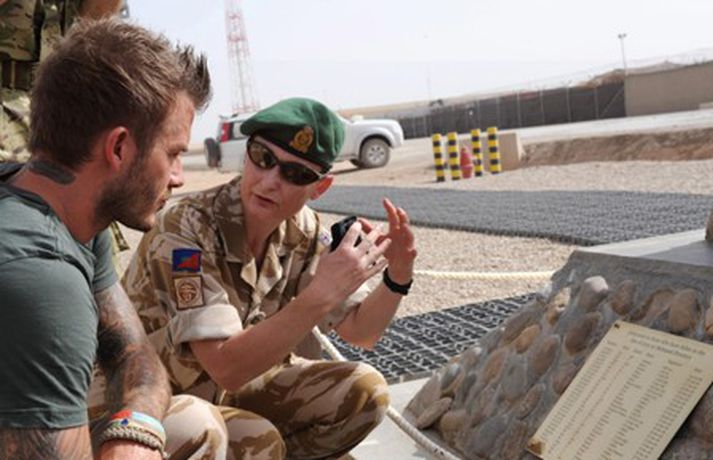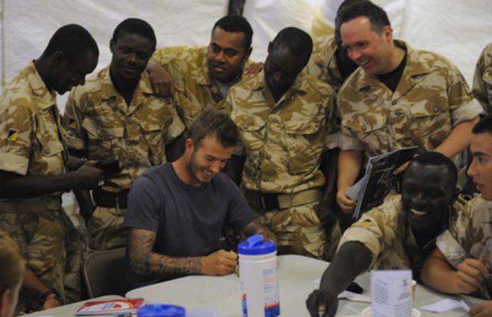 Knattspyrnukappanum David Beckham var vel tekið þegar hann heimsótti breska hermenn í Afganistan í gær. Beckham ræddi við hermenn á hersjúkrahúsi og í aðalherstöð Breta í Helmandhéraði, en þar hefur verið afar róstusamt undanfarið ár. Auk þess að ræða við samlanda sína og gefa eiginhandaráritanir fór Beckham að minnismerki um fallna hermenna. „Þetta er ógnvekjandi starf. Ég hef aldrei hitt hugrakkari fólk og það er sannarlega heiður fyrir mig að fá að vera hérna," sagði andsliðsfyrirliðinn fyrrverandi og bætti við að hann væri ákaflega stoltur af hermönnunum.Mynd/APMynd/APMynd/APMynd/APMynd/APMynd/APMynd/APMynd/AP
