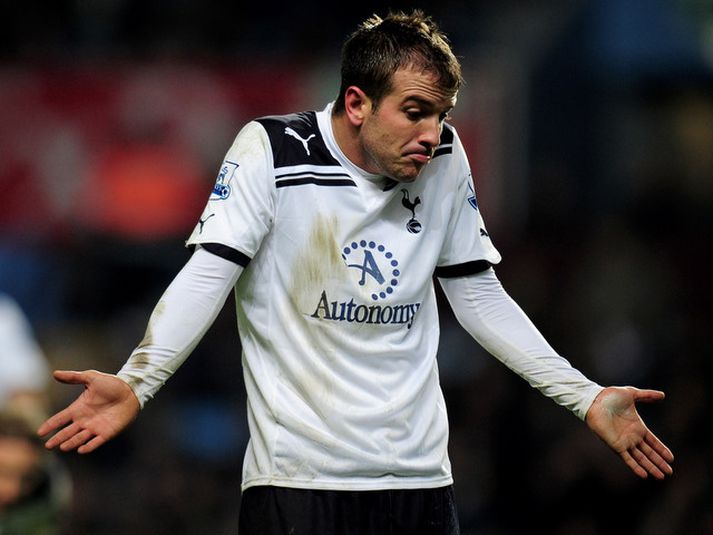 Harry Redknapp, stjóri Tottenham, viðurkenndi það eftir 2-1 sigur liðsins á Aston Villa í ensku úrvalsdeildinni í gær að hann hafi verið í vafa um hvort rétt væri að nota Rafael van der Vaart í þessum leik. Hollendingurinn skoraði bæði mörk Tottenham í leiknum en hann var búinn að vera frá í þrjá leiki vegna meiðsla. „Ég tók áhættuna því hann hefur verið í vandræðum með tognanir aftan í læri. Hann er í hættu á að meiðast þegar hann þreytist í leikjunum," sagði Harry Redknapp við Sky Sports. Rafael van der Vaart skoraði mörkin sína á 23. og 67. mínútu með lúmskum skotum og það er hægt að sjá þau með því að skoða svipmyndir úr leiknum hér að ofan. „Hann fór á HM og spilaði þar stórt hlutverk með hollenska landsliðinu og náði því ekki fullu undirbúningstímabili. Þegar hann þreytist þá hefur hann tilhneigingu til að meiðast og ég hafði áhyggjur af því," sagði Redknapp.Rafael Van Der Vaart.Mynd/Nordic Photos/Getty„Hann spilaði líklega tíu mínútum lengur en hann átti að gera. Það var bara svo mikilvægt fyrir okkur að hann gat haldið boltanum," sagði Redknapp en Tottenham lék manni færri frá því í fyrri hálfleik. „Hann er búinn að vera frábær fyrir okkur og er maður sem er að skora milli 15 og 20 mörk á tímabili. Hann hefur allt til alls og er ekki bara mikill markaskorari því hann er líka frábær alhliða fótboltamaður," sagði Redknapp. Rafael van der Vaart hefur skorað 8 mörk og gefið 5 stoðsendingar í 12 leikjum í ensku úrvalsdeildinni á þessu tímabili.