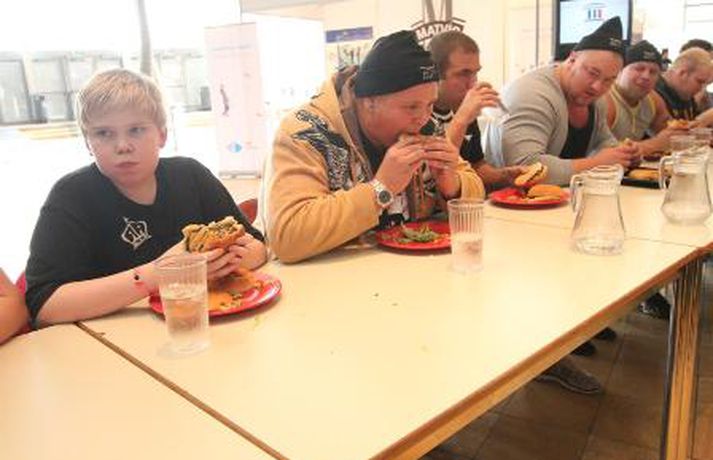 Kláraði fjóra hamborgara á rúmum tveimur mínútum Jón Hákon Halldórsson skrifar 25. september 2010 16:40 Keppt í hamborgaraáti. Mynd/ Matthías Þórarinsson. Búast má við að fjöldi manns leggi leið sína í Smáralindina um helgina þar sem Matardagar 2010 fara fram. Í gær fóru meðal annars fram Íslandsmót matreiðslu- og framleiðslunema, keppni um besta sjónvarpskokkinn og Íslandsmeistaramótið í hamborgaraáti. Magnús Ingi á Sjávarbarnum og ÍNN vann titilinn besti sjónvarpskokkurinn. Hver kokkur átti að útbúa gómsæta afmælisveislu fyrir 10 ára krakka á heilsusamlegum nótum. Í Íslandsmeistaramótinu í hamborgaraáti voru það kraftajötnar sem öttu kappi auk nokkurra ungra áhorfenda úr salnum. Árni Hjaltason bar sigur úr bítum, en hann kláraði fjóra hamborgara á ótrúlega stuttum tíma: 2 mínútum og 23 sekúndum. Meðfylgjandi myndir tók Matthías Þórarinsson. Mest lesið Trump lokar Kennedy-miðstöðinni í tvö ár „vegna endurbóta“ Erlent Hljóp upp í fjall eftir árekstur og neitaði að koma niður Erlent „Ég spyr hvernig hefði farið ef ég hefði ekki lifað þetta af“ Innlent Um 125 börn á þyngdarstjórnunarlyfjum og 500 með fitulifur Innlent Hinn fimm ára Liam laus úr haldi og kominn heim Erlent Töframaður lúbarinn í Garðabæ: „Ég hélt að þetta væri búið“ Innlent „Getur Mette-Marit orðið drottning eftir þetta?“ Erlent Gagnagrunnur heimilisfanga ICE-liða hýstur á Íslandi Innlent Segir af sér þingmennsku að ákveðnu skilyrði uppfylltu Innlent Leystu upp alla stjórnmálaflokka landsins Erlent Fleiri fréttir Um 125 börn á þyngdarstjórnunarlyfjum og 500 með fitulifur Gagnagrunnur heimilisfanga ICE-liða hýstur á Íslandi Dyravörður tók gest kverkataki Geta stórbætt þjónustu fyrir þau sem greinast með krabbamein Segir af sér þingmennsku að ákveðnu skilyrði uppfylltu Sáttamiðlun úrræði sem væri alls ekki fyrir alla þolendur Spennt að mæta fyrrverandi yfirmanni í kappræðum Dagur kvenfélagskonunnar er í dag 1. febrúar Líkurnar á lækkun „mjög litlar“ Mótmæla og biðla til utanríkisráðherra Nýir oddvitar og sáttameðferð í kynferðisbrotamálum Töframaður lúbarinn í Garðabæ: „Ég hélt að þetta væri búið“ Listamenn safna fyrir 10 ára dreng á Selfossi í dag „Ég spyr hvernig hefði farið ef ég hefði ekki lifað þetta af“ Sprengisandur: Laxeldi, verðbólga og falsfréttir Grunaður um stórfellda líkamsárás „Á yfir höfði sér kærur vegna fjölda umferðarlagabrota“ Ölvuð kona grunuð um að valda umferðarslysi á rafhlaupahjóli Hlýnandi veður í dag og „meinlaus austanlægð“ í kortunum Hilmar Gunnarsson er oddviti í Mosfellsbæ Vilhjálmur Árnason leiðir Sjálfstæðismenn í Reykjanesbæ Baráttan hafi verið Viðreisn til sóma „Lúxusvandamál“ að velja og hafna á listann Stöðvuðu stolinn bíl með naglamottu eftir eftirför um alla borg Sjálfstæðismenn í Reykjanesbæ velja sér oddvita „Vinna er heilsuefling“ Björg sökuð um brot á kosningareglum Viðreisnar Blótað í Grindavík á nýjan leik Vaktin: Björg Magnúsdóttir leiðir lista Viðreisnar í borginni „Liggur maður þarna á jörðinni og það var verið að berja hann í stöppu“ Sjá meira