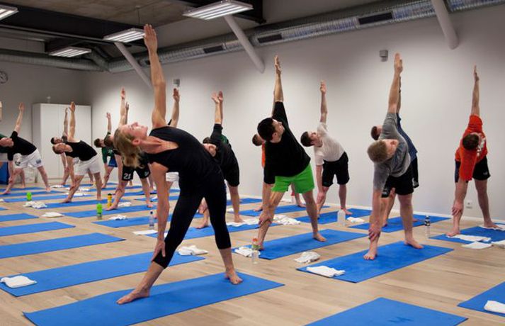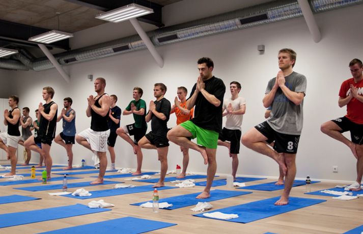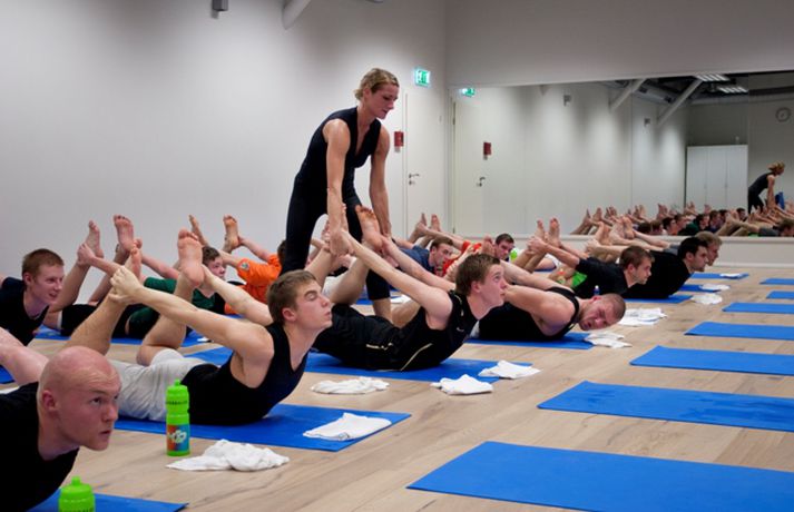Vísir fékk að fylgjast með stæltum liðsmönnum meistarflokks karla í Breiðablik í Hot-jógatíma, sem fór fram í 42 gráðu upphituðum sal í Sporthúsinu. Ólafur Helgi Kristjánsson þjálfari liðsins og jógakennarinn Jóhanna Karlsdóttir gáfu sér tíma til að ræða hvernig tímarnir leggjast í Breiðabliksmenn. Strákarnir eru kattliðugir eins og myndirnar sýna greinilega. „Í fyrsta lagi var ég náttúrulega að hugsa þetta út frá þessu líkamlega og það er að fá mótvægi við „hardcore" æfingar sem gleymast stundum," segir Ólafur þjálfari. „Í öðru lagi að slaka á og anda og allt þetta. Hvor tveggja er mjög gott og strákarnir eru að fíla þetta alveg rosalega vel. Þeir eru mjög ánægðir og finna nú þegar á sér mun bara eftir fjóra tíma," segir Ólafur. „Hot-jóga er ekki bara teygjur í hita eins og margir halda heldur eru þetta æfingar sem taka á öllu í bland; vöðvar styrktir, liðamót liðkuð, jafnvægi og blóðrás eflt," segir Jóhanna. „Það er líka mikilvægt fyrir þá að komast í annað umhverfi þar sem stundaðar eru öðurvísi æfingar. Það var ný áskorun að gera hluti sem þeir eru ekki góðir í en þurfa að takast á við. Upplifunin er mjög jákvæð," bætir hann við. Í skýjunum með strákana „Þeir komu mjög á óvart hversu góðir þeir voru strax í því að ná þessum stöðum og þeir vanda sig vel," segir Jóhanna. „Þessar æfingar eru mjög sniðugar fyrir íþróttafólk almennt og sérstaklega þegar að hné þurfa að vera vel smurð því þessar æfingar voru upprunalega settar saman af manni sem átti við alvarleg hné-meiðsl að glíma." „Æfingarnar liðka og opna öll liðamótin og sérstaklega hrygg, mjaðmir og hné og vöðvaflokkar í kringum þessi liðamót eru styrktir og mýktir upp með teygjum. „Hot-jóga er ekki bara teygjur í hita eins og margir halda heldur eru þetta æfingar sem taka á öllu í bland; vöðvar styrktir, liðamót liðkuð, jafnvægi og blóðrás eflt. Hot-jóga á við alla en auðvitað bara líka spurning um hvað fólk hefur gaman af," segir Jóhanna.-elly@365.is HotYoga.is