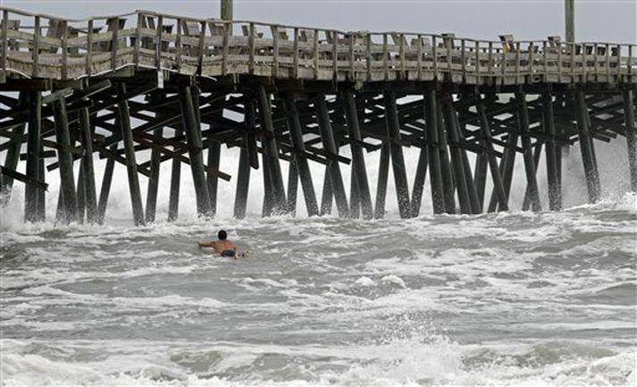 Earl missir vind úr seglum 3. september 2010 07:21 MYND/AP Fellibylurinn Earl hefur nú náð ströndum Norður Karólínu í Bandaríkjunum og stefnir að Nýja Englandi. Áður en hann náði landi hafði þó dregið verulega úr styrk hans og flokkast hann nú sem annars stigs fellibylur en hann hafði náð fjórða stigi þegar mestur vindurinn var í honum. Yfirvöld hvetja íbúa þó til þess að búa sig vel undir veðrið því enn geti hann blásið kröftuglega. Mest lesið Stigmögnun í nágrannaerjum: „Hann vildi keyra á mig“ Innlent Gengst nú við skilaboðunum umdeildu Innlent Hægt að nálgast vottorð um að makinn hafi rangt fyrir sér Innlent „Það átti að taka mig í karphúsið“ Innlent Selenskí undir miklum þrýstingi Innlent „Einhver SA prins mættur til að láta sem allt sé bara kózý“ Innlent Trump fer í fýlu og dregur boð sitt til Carney til baka Erlent Játaði meira og meira eftir því sem á leið Innlent Ólympíufarinn eftirlýsti gómaður eftir áratug á flótta Erlent Eldur í sendibíl á Miklubraut Innlent Fleiri fréttir Grinch siglt til hafnar í Marseille Ólympíufarinn eftirlýsti gómaður eftir áratug á flótta Bein útsending: Þorgerður ávarpar mannréttindaráðið vegna Íran Viðurkenna loks, fyrir mistök, að Úkraínumenn hafi sökkt Moskvu Repúblikanar leita aftur á náðir Musks Leysir upp þingið og boðar til kosninga í Japan Sex særðir eftir hnífaárás á mótmælum í Antwerpen Rússar, Úkraínumenn og Bandaríkjamenn funda í fyrsta sinn við sama borð Trump fer í fýlu og dregur boð sitt til Carney til baka „Við getum gert það sem við viljum“ Viti ekki hvað er í samningi NATO sem semji ekki fyrir hönd Grænlands Frakkar riðu á vaðið og tóku skuggaskip Rússa Sendi Evrópu tóninn: „Þú mótar ekki nýja heimsmynd með eintómum orðum“ Draumur Trumps um „Rivíeru Mið-Austurlanda“ lifir enn Samkomulagið sem ekkert samkomulag er um Drógu mann út á nærbuxunum sem hafði ekkert til saka unnið Trump kynnti friðarráðið Sýknaður af ásökunum um aðgerðaleysi þegar nítján börn dóu Rutte samdi ekki við Trump fyrir hönd danska konungsríkisins Handtóku fimm ára dreng og föður hans og sendu til Texas Samkomulagið veiti Bandaríkjunum aðgang að auðlindum Grænlands „Ramma framtíðarsamkomulags“ náð um Grænland og hætt við tolla Var á ráðstefnunni í Davos: „Fólk andaði kannski aðeins léttar“ X fyllist af gríni um Ísland/Grænland Þessi hönd er um sjötíu þúsund ára gömul Verði að eignast þetta „stóra fallega stykki af ís“ Fyrstu viðbrögð við ræðu Donalds Trump: „Ég bíð enn eftir að mennirnir í hvítu sloppunum nái í hann“ Höfuðstöðvar UNRWA í Jerúsalem rifnar Reyndu að fá dómara til að hlutast til um mál Le Pen Eldræða Carney: „Ef þú ert ekki við borðið þá ertu á matseðlinum“ Sjá meira