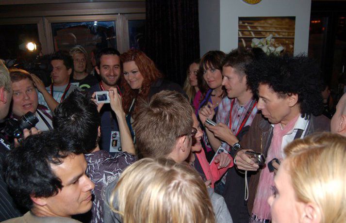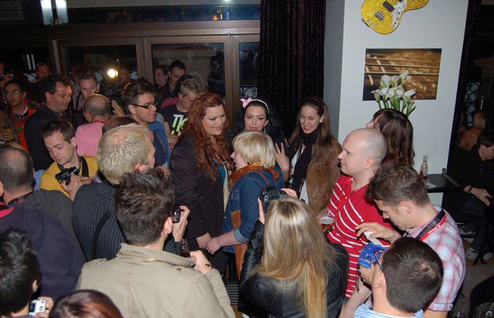 Íslenski Eurovision hópurinn með Heru Björk í fararbroddi sungu á skemmtistaðnum Euroclub í gærkvöldi. Þaðan lá leið hópsins á ónefndan skemmtistað þar sem hann söng fyrir upptöku norska sjónvarpsins. Salurinn söng með Heru allt lagið Je ne sais quoi. Fagfólk sem nær ótrúlega vel saman. Eins og smurð vél. Eins og myndirnar sýna ætlaði allt vitlaust að verða þegar Hera mætti á svæðið. Fjöldinn hrópaði: „Hera, Hera, Hera!" og karlmennirnir í íslenska hópnum stóðu í kringum hana eins og lífverðir. Þá má einnig sjá myndir sem teknar voru af hópnum í fyrri undanúrslitunum á þriðjudagskvöldið.
