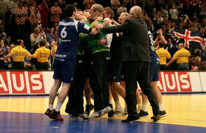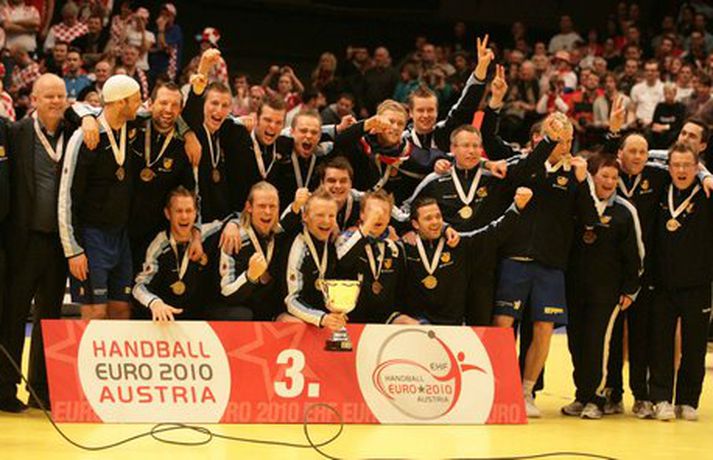 Strákarnir fagna bronsinu með stæl - Myndasyrpa Óskar Ófeigur Jónsson skrifar 31. janúar 2010 22:45 Íslenska liðið stóð sig frábærlega á EM í Austurríki. Mynd/DIENER Íslenska handboltalandsliðið náði sínum besta árangri á Evrópumóti frá upphafi þegar liðið tryggði sér þriðja sæti á EM í Austurríki í dag. Ljósmyndari Vísis og Fréttablaðsins, Georg Diener, var með vélina á lofti og myndaði gleðina í Wiener Stadthalle í dag. Myndasyrpu Georgs má sjá í albúminu hér að neðan. Hægt er að sjá myndirnar stærri með því að smella á þær.Mynd/DIENERMynd/DIENERMynd/DIENERMynd/DIENERMynd/DIENERMynd/DIENERMynd/DIENERMynd/DIENERMynd/DIENERMynd/DIENERMynd/DIENERMynd/DIENERMynd/DIENERMynd/DIENERMynd/DIENERMynd/DIENERMynd/DIENERMynd/DIENERMynd/DIENERMynd/DIENER Mest lesið „Trúi ekki að ég hafi beðið í 17 ár eftir grænum jakka“ Golf „Gaf frá mér hljóð sem enginn maður á mínum aldri á að gefa frá sér“ Körfubolti Segir ekkert vit í afsökunum Valsmanna Íslenski boltinn Snorri og Arnór eftirsóttir: Áhugi erlendis frá en HSÍ enn í forgangi Handbolti „Ef hann lítur á þetta sem leikaraskap þá er hann á rangri hillu“ Íslenski boltinn Sjáðu öll mörkin úr fyrstu umferð Bestu deildarinnar Íslenski boltinn Í slæmum málum fyrir að hrópa á McIlroy: „Færðu mér son minn aftur“ Golf Strangar reglur í kringum græna Masters-jakkann Golf Katrín Jakobs komin í FRÍ Sport „Svona Van der Sar í úrslitaleiknum í Meistaradeildinni 2008“ Sport Fleiri fréttir Með gæsahúð um allan líkamann í kveðjuleiknum Snorri og Arnór eftirsóttir: Áhugi erlendis frá en HSÍ enn í forgangi Stelpurnar okkar í neðsta styrkleikaflokki fyrir EM Ómar með fjórtán og Gísli skoraði alltaf Uppgjörið: Ísland - Portúgal 32-24| Ísland er á leiðinni á EM EM-sæti í húfi: „Mjög spennt að sjá hvar við stöndum núna“ Rekinn án skýringa og ætlar í mál Úrslitaleikur um EM-sæti: „Á ekki von á því að það komi fyrir aftur“ Ótrúlegt flug undir stjórn Guðjóns og Haukur bjó til helming marka Löwen Stjarnan einum sigri frá því að halda sér uppi Margt sem þarf að laga „Þetta er ákveðin skák“ Haukar - FH 27-22 | Haukar jöfnuðu Hafnarfjarðarslaginn Björgvins Halldórssonar minnst með einnar mínútu þögn „Margir sem töldu þetta vera galin skipti fyrir rúmu ári síðan“ „Heyrum varla í hvor öðrum“ Svartfellingar gerðu stelpunum okkar góðan greiða Blær situr sem límdur við botninn Arnór með bakið upp við vegg en Einar fagnar KA - Valur 30-33 | Svöruðu fyrir sig en tókst ekki að landa sigri „Ég vildi óska þess að ég hefði ekki verið svona mikið veik“ Sagt upp störfum hjá Aftureldingu Stjarnan með sterka yfirlýsingu í fyrsta leik Titilvörnin hefst vel hjá Óðni Janus fagnaði jafntefli og mætir Magdeburg næst Uppgjörið: Færeyjar - Ísland 35-30 | Valtað yfir stelpurnar okkar í Þórshöfn „Allt of margir leikmenn sem þurfa að stíga upp“ „Þetta er margfræg klisja“ „Tel mig vera rosalegan stemningskarl“ Uppgjörið: FH - Haukar 27-21 | Hafnarfjörður er hvítur í bili Sjá meira
