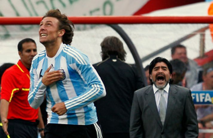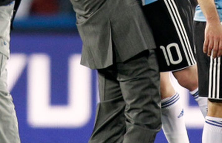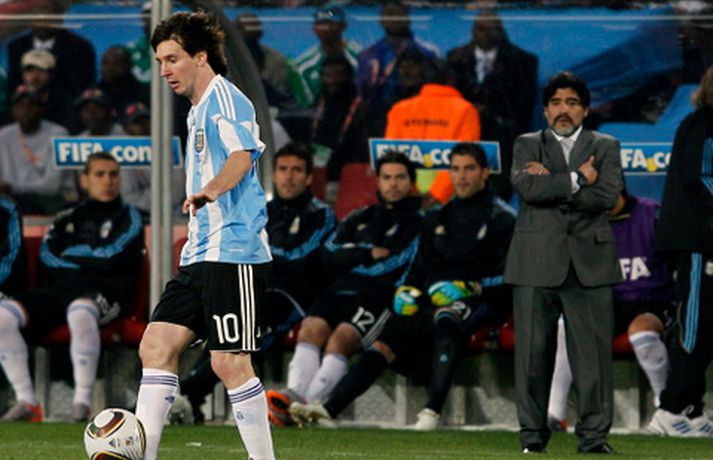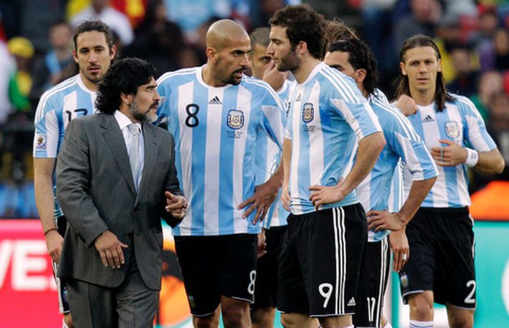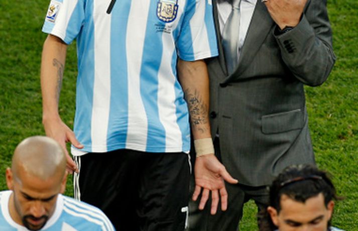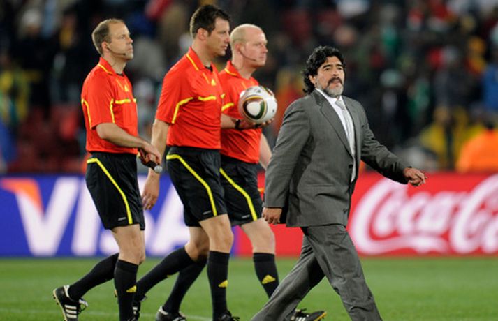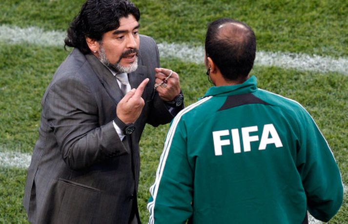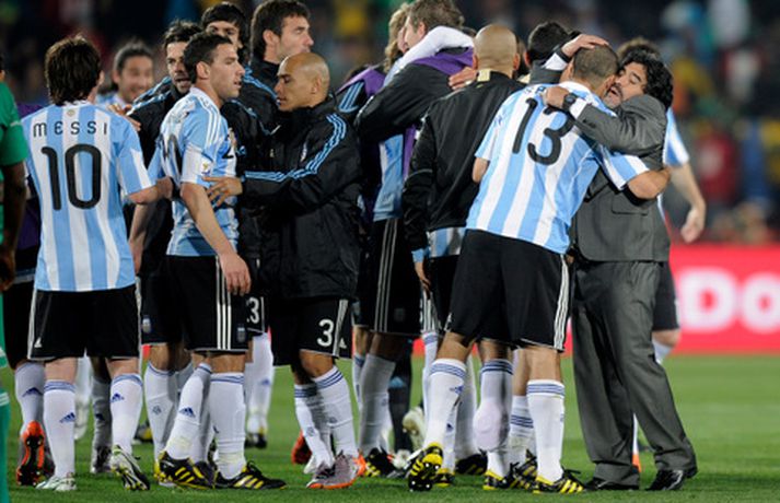 Diego Maradona stýrði Argentínu til 1-0 sigurs í fyrsta leik sínum sem þjálfara í úrslitakeppni HM og margar frábærar sóknir hans manna áttu skila mun fleiri mörkum en þessu eini sem skilaði liðinu þremur stigum. Myndavélarnar fóru ekki af Diego allan leikinn og hann bauð upp á tilfinninga-rússibana af bestu gerð. Það mátti oft horfa á leikinn í gegnum Maradona og einhverjir komust svo að orði að hann hafi verið meira með boltann en leikmenn í liði hans eins og Angel Di Maria. Ljósmyndarar AP-fréttastofunnar voru líka með sínar myndavélar á knattspyrnugoði Argentínu sem var mættur til leiks í jakkafötum að beiðni dætra sinna. Við höfum nýtt okkur þetta og tekið saman smá myndasyrpu með tilþrifum Maradona - að þessu sinni utan vallar. Myndirnar má sjá í albúminu hér að neðan. Hægt er að sjá myndirnar stærri með því að smella á þær.Mynd/APMynd/APMynd/APMynd/APMynd/APMynd/APMynd/APMynd/APMynd/APMynd/APMynd/APMynd/APMynd/APMynd/AP