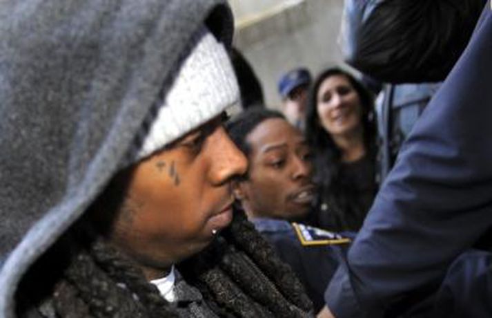 Rapparinn Lil Wayne hóf í gær afplánun á eins árs fangelsisdómi sem hann fékk fyrir að vera með hlaðna byssu í tónleikarútu sinni. Hann gæti átt von á því að vera sleppt eftir átta mánuði ef hann hagar sér vel. Lögfræðingur kappans hefur óskað eftir því að hann verði í sérstakri gæslu til að gæta að heilsu hans og öryggi. MYND: AFP NordicMYND: AFP NordicMYND: AFP NordicMYND: AFP NordicMYND: AFP NordicMYND: AFP Nordic