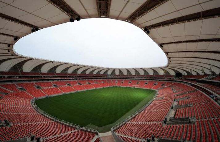 Vellirnir 10 á HM - Allt að verða tilbúið fyrir veisluna Elvar Geir Magnússon skrifar 4. mars 2010 14:00 Einn af völlunum sem spilað verður á. Spilað er á tíu völlum á heimsmeistaramótinu í fótbolta sem hefst eftir 98 daga í Suður-Afríku. Sepp Blatter, forseti FIFA, er búinn að skoða alla vellina en þó þeir séu ekki alveg tilbúnir í slaginn er allt á lokastigi. Smelltu á tengilinn hér að neðan til að kynna þér vellina tíu í Suður-Afríku. Áhorfendur: 66.005 - Stórglæsilegur nýbyggður völlur í mögnuðu umhverfi. Er nánast tilbúinn en eftir á að lagfæra samgöngur að honum. Annar undanúrslitaleikurinn spilaður á þessum velli.Áhorfendur: 61.619 - Frægur ruðningsvöllur en honum hefur verið breytt lítillega og sætum fjölgað. Ekki fallegasti leikvangur mótsins en mjög stórt mannvirki.Áhorfendur: 45.058 - Bloemfontein er aðsetur dómsvaldsins í Suður-Afríku og þar má einnig finna þennan leikvang. Hann hefur verið stækkaður talsvert og er margrómaður fyrir hve auðvelt er að skapa góða stemningu á honum.Áhorfendur: 49.365 - Einn elsti leikvangur Suður-Afríku en hann hefur verið notaður undir stórviðburði í íþróttum síðan 1903. Myndi seint vinna til verðlauna fyrir arkitektúr en hefur verið lagfærður mjög reglulega.Áhorfendur: 43.589 - Nýbyggður leikvangur en enn á eftir að leggja gras á hann eins og myndin sýnir glögglega. Stúkurnar minna á zebra-hest.Áhorfendur: 69.957 - Frábær leikvangur en sætin á honum eiga að tákna sjóinn og sólarupprásina. Kennileyti vallarins er brúin yfir hann sem er opin fyrir göngugarpa og teygjustökkvara.Áhorfendur: 46.082 - Glæsilegur völlur sem er staðsettur rétt við læk. Með þak eins og sólblóm, hannað til að verjast vindum. Enn á eftir að lagfæra samgöngur að honum.Áhorfendur: 45.264 - Arkitektinn hannaði þennan leikvang eftir hinum frægu baobab trjám. Sætin í stúkunni mynda fjöll og sól. Reyndar er ekkert vitað hvað hægt er að nota þennan leikvang undir eftir HM en það er seinni tíma vandamál.Áhorfendur: 44.530 - Fyrsti leikur Englands fer fram á þessum litríka velli. Stór hlaupabrautin á væntanlega ekki eftir að vekja lukku ensku stuðningsmannana.Áhorfendur: 88.460 - Heimamenn þurfa svo sannarlega ekki að skammast sín fyrir þetta geimskip þar sem opnunarleikur og úrslitaleikur mótsins fara fram. Leikvangurinn sjálfur er tilbúinn en það á eftir að snyrta umhverfi hans. HM 2010 í Suður-Afríku Mest lesið Alfreð tekur á sig sökina: Gagnrýndur óbeint af leikmanni Handbolti Undrandi á skrýtinni stöðu: „Þetta er bara ekki að virka“ Handbolti Mætti brjálaður í viðtal og hjólaði í stjórnina Enski boltinn Fá martraðir um Tryggva eftir leik kvöldsins Körfubolti Andri einn og yfirgefinn: „Held ég hafi sloppið“ Handbolti Stór mistök Alfreðs reyndust Þjóðverjum dýrkeypt Handbolti Króatar Dags lentu í kröppum dansi í fyrsta leik á EM Handbolti Stefán Teitur sætti sig ekki við bekkjarsetu: „Það besta í stöðunni“ Fótbolti Norðmenn áfram í milliriðla Handbolti Einar enn í einangrun en aðrir ferskir Handbolti Fleiri fréttir Stefán Teitur sætti sig ekki við bekkjarsetu: „Það besta í stöðunni“ Mætti brjálaður í viðtal og hjólaði í stjórnina Pirrandi kvöld fyrir topplið Arsenal í Skírisskógi Salah klúðraði vítaspyrnu er Nígería tók þriðja sætið Þróttur skellti KR í Reykjavíkurmótinu Dagar Frank hjá Tottenham taldir? Benoný skoraði sigurmark Stockport Kærkominn sigur í fyrsta deildarleik Rosenior með Chelsea Víti í súginn í fjórða jafntefli Liverpool í röð Ísaki fórnað í langþráðum sigri Kölnar Birta hetja Genoa í frumrauninni Markaskorarinn Mbeumo: „Old Trafford var ótrúlegur í dag“ Mbappé á skotskónum í fyrsta sigrinum undir stjórn Arbeloa Draumabyrjun hjá Carrick KR fær tvo unga Ganverja „Stoltur að fá þetta tækifæri og tek því ekki sem sjálfsögðum hlut“ Alveg sama hvað Roy Keane hefur að segja Hákon horfði upp á tap er PSG tók toppsætið Líklegra að Vinícius Jr. framlengi við Real Madrid eftir brottför Xabi Alonso Slot segir Salah enn vera mjög mikilvægan fyrir Liverpool Glasner hættir með Crystal Palace í vor og Guehi fer nú í janúar Gamla Íslendingafélagið gæti breytt aftur um nafn Breytingar hjá Breiðabliki Félagsfærni og persónuleiki skiptir miklu máli þegar Tuchel velur HM-hópinn Albert fær liðsfélaga frá Leeds Nýr þjálfari Chelsea minnti leikmenn á að þvo sér um hendur Í lífstíðarbann fyrir þessa óhuggulegu tæklingu Kenna Donald Trump og falli Bandaríkjadals um sjö milljarða tap „Á eftir bolta kemur barn“ Rúmlega hálfur milljarður manna sótti um miða á HM Sjá meira