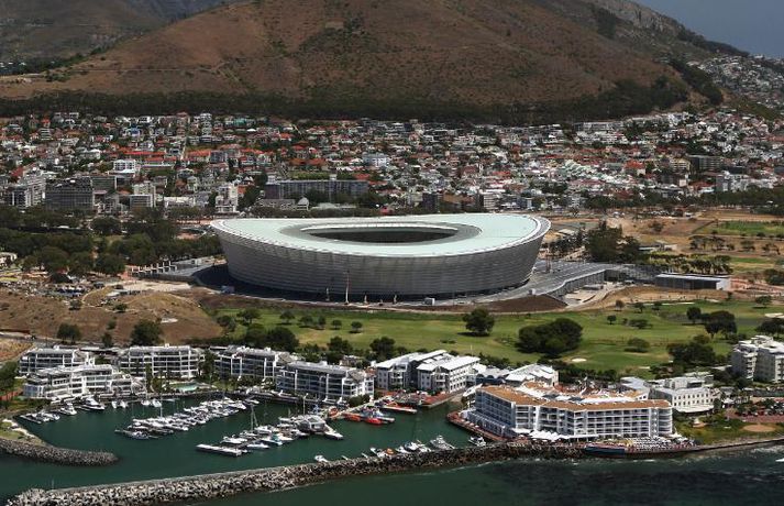 Spilað er á tíu völlum á heimsmeistaramótinu í fótbolta sem hefst eftir 98 daga í Suður-Afríku. Sepp Blatter, forseti FIFA, er búinn að skoða alla vellina en þó þeir séu ekki alveg tilbúnir í slaginn er allt á lokastigi. Smelltu á tengilinn hér að neðan til að kynna þér vellina tíu í Suður-Afríku. Áhorfendur: 66.005 - Stórglæsilegur nýbyggður völlur í mögnuðu umhverfi. Er nánast tilbúinn en eftir á að lagfæra samgöngur að honum. Annar undanúrslitaleikurinn spilaður á þessum velli.Áhorfendur: 61.619 - Frægur ruðningsvöllur en honum hefur verið breytt lítillega og sætum fjölgað. Ekki fallegasti leikvangur mótsins en mjög stórt mannvirki.Áhorfendur: 45.058 - Bloemfontein er aðsetur dómsvaldsins í Suður-Afríku og þar má einnig finna þennan leikvang. Hann hefur verið stækkaður talsvert og er margrómaður fyrir hve auðvelt er að skapa góða stemningu á honum.Áhorfendur: 49.365 - Einn elsti leikvangur Suður-Afríku en hann hefur verið notaður undir stórviðburði í íþróttum síðan 1903. Myndi seint vinna til verðlauna fyrir arkitektúr en hefur verið lagfærður mjög reglulega.Áhorfendur: 43.589 - Nýbyggður leikvangur en enn á eftir að leggja gras á hann eins og myndin sýnir glögglega. Stúkurnar minna á zebra-hest.Áhorfendur: 69.957 - Frábær leikvangur en sætin á honum eiga að tákna sjóinn og sólarupprásina. Kennileyti vallarins er brúin yfir hann sem er opin fyrir göngugarpa og teygjustökkvara.Áhorfendur: 46.082 - Glæsilegur völlur sem er staðsettur rétt við læk. Með þak eins og sólblóm, hannað til að verjast vindum. Enn á eftir að lagfæra samgöngur að honum.Áhorfendur: 45.264 - Arkitektinn hannaði þennan leikvang eftir hinum frægu baobab trjám. Sætin í stúkunni mynda fjöll og sól. Reyndar er ekkert vitað hvað hægt er að nota þennan leikvang undir eftir HM en það er seinni tíma vandamál.Áhorfendur: 44.530 - Fyrsti leikur Englands fer fram á þessum litríka velli. Stór hlaupabrautin á væntanlega ekki eftir að vekja lukku ensku stuðningsmannana.Áhorfendur: 88.460 - Heimamenn þurfa svo sannarlega ekki að skammast sín fyrir þetta geimskip þar sem opnunarleikur og úrslitaleikur mótsins fara fram. Leikvangurinn sjálfur er tilbúinn en það á eftir að snyrta umhverfi hans.