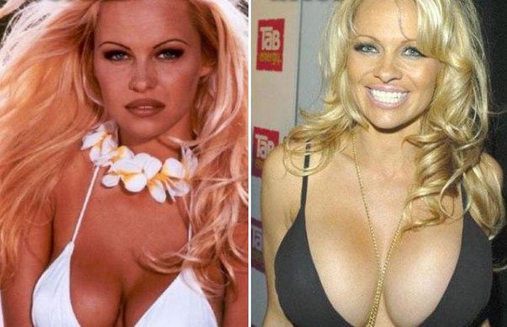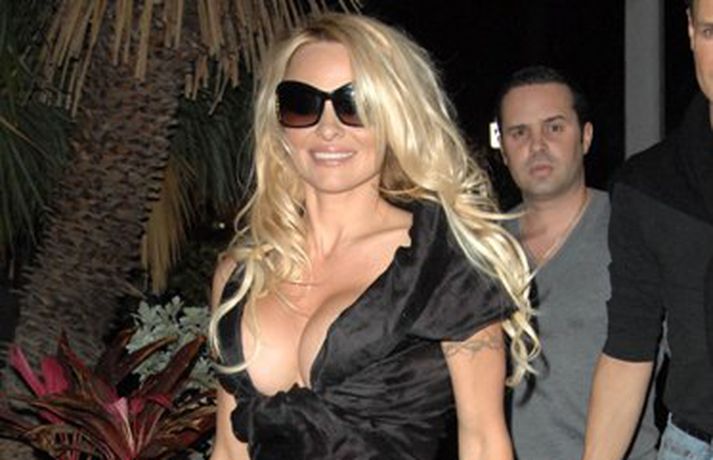 Á meðfylgjandi myndum má sjá Pamelu Anderson, 41 árs, ásamt lífverði þegar hún kynnti nýja fatalínu sem ber heitið „A*Muse". Pamela vinnur sér inn aura með því að mæta á ýmsar uppákomur gegn greiðslu enda kominn timi til að hún vinni sér inn aura til að greiða skuldahalasúpuna sem hún dregur á eftir sér. Ekki fleiri lýtaaðgerðir! Pamela skuldar verktökum 1,2 milljónir Bandaríkjadala auk þess sem hún skuldar skattinum dágóða summu. „Ég er tveggja barna móðir sem þýðir að ég sætti mig ekki við neitt bull eins og ég gerði í gamla daga," sagði Pamela. Þá má einnig sjá breytinguna sem orðið hefur á henni í myndasafni.