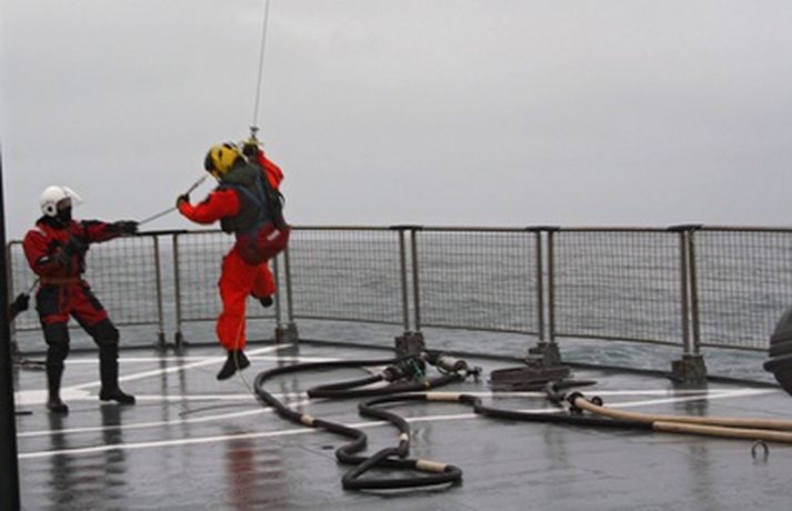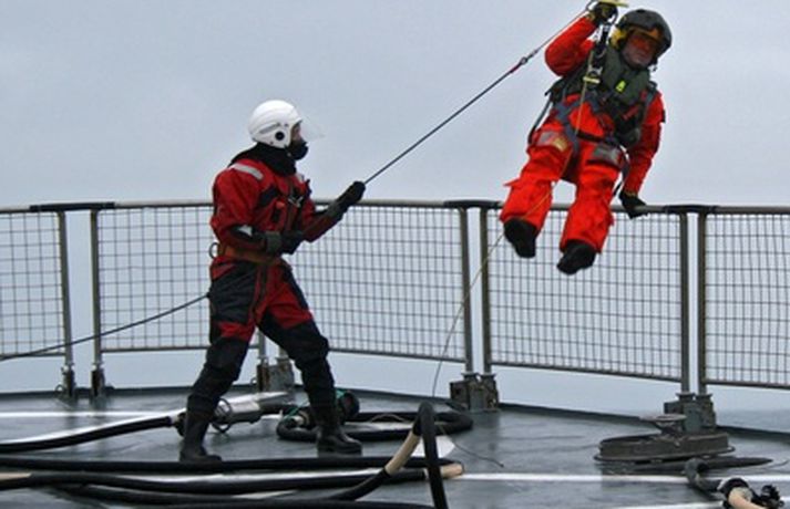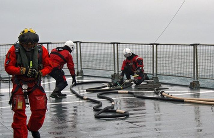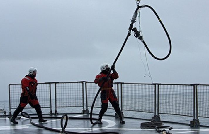 Dældu eldsneyti frá varðskipi yfir í þyrlu - myndir 9. mars 2010 13:32 MYND/Guðmundur St. Valdimarsson Nýverið var þyrlueldsneyti í fyrsta sinn dælt á Líf, þyrlu Landhelgisgæslunnar meðan hún var á lofti yfir íslensku varðskipi. Í tilkynningu frá Gæslunni segir að slíkt sé afar mikilvægt að geta gert þegar verið er í aðgerðum á hafi úti og langt fyrir þyrlu að fara til eldsneytistöku. „Gekk æfingin í alla staði vel en undanfarið hafa varðskip og þyrla Landhelgisgæslunnar æft verklag vegna þessa án þess að eldsneyti væri dælt á þyrluna," segir ennfremur. Við eldsneytisáfyllinguna er notaður þyrlueldsneytis búnaður en um borð í varðskipinu geta verið 2500 lítrar eldsneytis. „Gengur áfyllingin þannig fyrir sig að þyrla tilkynnir um að hún þurfi á eldsneyti að halda frá skipinu. Áhöfn skipsins gerir klárt fyrir eldsneytis afhendingu með því að taka slöngu upp á þyrluþilfar, er hún lögð niður í buktum og síðan tengd við bakrennsli til eldsneytistanks. Er síðan dælustöðin sett í gang og eldsneytinu hringrásað í 15 mínútur. Er þá allt tilbúið til að taka á móti þyrlunni," segir einnig. Á meðfylgjandi myndum sem Guðmundur St. Valdimarsson bátsmaður tók má fylgjast með aðgerðinni í heild sinni. TF-LIF kemur yfir Ægi til eldsneytistöku.Þyrlan kemur yfir skipið á bakborða, halda bæði þyrla og skip stefnu upp í vind. Sigmaður þyrlunnar Henning Þ. Aðalmundsson kemur niður á þilfar Ægis til að fylgjast með eldsneytistökunni.Sigmaðurinn að koma niður á þilfarið. Óskar Á. Skúlason háseti tekur á móti honum.Óskar ásamt Sævari M. Magnússyni háseta tengja áfyllingar slönguna við spilkrók þyrlunnar .Áhöfn þyrlunar hífir til sín áfyllingar slönguna.Óskar Óskarsson spilmaður tekur á móti slöngunni. Þórarinn Ingi Ingason flugstjóri heldur vélinni stöðugri yfir á meðan á áfyllingu stendur.Spilmaðurinn, sem jafnframt er flugvirki tengir jarðbindivír við þar til gerðan punkt í þyrlunni og slönguna við áfyllistút á þyrlunni.Allt tilbúið til að dæla eldsneytinu upp til þyrlunar.Spilmaður gefur merki til dekkstjóra skipsins að hefja dælingu.Snorre Grail stýrimaður dælir upp eldsneytinu og Óskar og Sævar halda slöngunni til á meðan. Þegar nægt magn er komið á þyrluna gefur spilmaður merki til dekkstjóra um að stöðva dælingu.Að dælingu lokinni er áfyllistútinn aftengdur og honum slakað niður á þilfar varðskipsins.Óskar og Sævar taka á móti slöngunni. Slangan og jarðbindivírinn aftengd frá spilvírnum og lýkur þar með aðgerðinni.Sigmaðurinn hífður aftur upp í þyrluna að dælingu lokinni.Líf heldur til annarra starfa með aukið eldsneyti innanborðs. Mest lesið „Lygaáróðursherferð af hálfu pólitískra andstæðinga“ Innlent Allir Bretar fæddir eftir 2008 í lífstíðarbann frá tóbaki Erlent Fiskflutningabíll valt á Þorlákshafnarvegi Innlent Vilja tæpar tvö hundruð billjónir til varnarmála Erlent Þriðji þingmaðurinn segir af sér á viku Erlent Tveir flokkar í Garðabæ útiloka samstarf Innlent Hætta að styrkja Feneyjartvíæringinn vegna þátttöku Rússa Erlent Ingó veðurguð hefur fengið meira en nóg Innlent Greinir frá nauðgun eftir sýningu í Þjóðleikhúsinu Innlent Við þurfum að vera tilbúin að takast á við eldgosavá Innlent Fleiri fréttir Kallar formann VR „ómerkilegan popúlista“ „Lygaáróðursherferð af hálfu pólitískra andstæðinga“ Við þurfum að vera tilbúin að takast á við eldgosavá Fiskflutningabíll valt á Þorlákshafnarvegi „Vitum ekkert hvað við eigum von á mörgum“ Tveir flokkar í Garðabæ útiloka samstarf Vaka kaus sér nýja forystu Segir ráðherra fá of lausan taum í nýjum sóttvarnalögum Dyflinarreglugerðin ekki afnumin þótt orðalag breytist Hættusvæði vegna hraunrennslis, almyrkvi og afmæli Sviptur réttindunum á staðnum Tilfærsla Sigríðar Bjarkar tímabundin Alma Möller fagnar nýjum sóttvarnalögum „Líður stundum eins og ég sé með pólitískan eltihrelli“ Grindavík og Hveragerði talin í mestri hættu vegna eldgosa Gæsluvarðhald framlengt yfir þremur í Dettifossmálinu Ekki hafi verið hægt að sýna fram á meinta nauðgun Forseti klökknaði þegar Þórdís Kolbrún kvaddi Megi búast við útskúfun úr samfélaginu eftir afplánun Orðinn máttvana í útlimum þegar hjálpin barst Sigríður Björk aftur færð til Gagnrýnin komi ekki á óvart en telja sig vera að gera rétt Kosningapallborð fréttastofu: Mun Sjálfstæðisflokkurinn halda velli í Garðabæ? Launamál í verkalýðshreyfingunni og þingmaður hætt kominn á kajak Ingibjörg þarf ekki að víkja í máli Margrétar Foksandur og rykagnir búa í þokunni Var bjargað úr sjónum eftir hálftíma: „Slysin gera ekki boð á undan sér“ Bílvelta á Hringbraut Umfangsmikil lögregluaðgerð vegna líkamsárásar Tungumálið gerir Ísland að landi tækifæranna Sjá meira