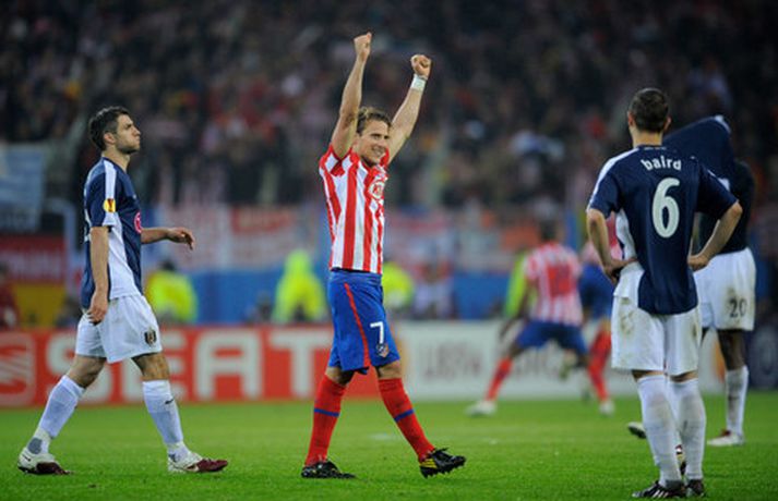 Fögnuður Madrídinga - myndasyrpa Eiríkur Stefán Ásgeirsson skrifar 13. maí 2010 08:30 Evrópumeistarar Atletico Madrid. Nordic Photos / Getty Images Atletico Madrid fagnaði í gær vel og innilega sigri sínum í Evrópudeild UEFA eftir að hafa lagt Fulham í framlengdum úrslitaleiknum í Hamburg, 2-1. Diego Forlan var hetja Madrídinga í leiknum en hann skoraði bæði mörk liðsins, þar af sigurmarkið undir lok framlengingarinnar. Forlan hafði komið Atletico yfir í fyrri hálfleik en aðeins nokkrum mínútum síðar náði Simon Davies að jafna metin fyrir þá ensku. Allt útlit var fyrir að úrslit myndu ráðast í vítaspyrnukeppni en þá skoraði Forlan sem tryggði Atletico bikarinn góða. Myndir úr leiknum og af fögnuði Spánverjanna má sjá með því að smella á hlekkinn hér fyrir neðan. Diego Forlan var hetja kvöldsins. Hér er hann með bikarinn góða.Hér fagnar Forlan sigurmarki sínu í leiknum.Sergio Agüero átti þátt í báðum mörkum Atletico. Hér er hann í baráttu við Dickson Etuhu og Zoltan Gera, leikmenn Fulham.Roy Hogdson hefur náð góðum árangri með Fulham.Nordic Photos / Getty ImagesStórleikarinn Hugh Grant var á leiknum og hvatti sína menn í Fulham áfram.Þessi stuðningsmaður Atletico lét líka vel í sér heyra.Hér fagnar Forlan eftir að búið er að flauta til leiksloka.Nordic Photos / Getty ImagesLeikmenn Atletico fagna innilega ..... en Paul Konchesky og félagar í Fulham voru niðurbrotnir.Hér fer bikarinn góði á loft.Bikarinn er í öruggum höndum fyrirliðans Antonio Lopez.Danny Murphy var vitanlega svekktur í leikslok.Þjálfarinn Quique Sanchez Flores fékk tolleringu.Atletico Madrid, sigurvegarar í Evrópudeild UEFA árið 2010. Evrópudeild UEFA Mest lesið Líður alltaf yfir hana þegar hún kemur í mark Sport Einkunnir Íslands: Þrjár heitastar í frostinu Fótbolti Magnús Már í viðræðum við HK Íslenski boltinn Vísar slúðrinu til föðurhúsanna Enski boltinn „Hefði séð eftir því alla ævi“ Íslenski boltinn Albert og Mikael Egill í vondum málum á Ítalíu Fótbolti „Við tókum bara þá ákvörðun að fara í Svanavatnið“ Fótbolti Rekinn fyrir ummæli sín um krabbameinssjúka handboltagoðsögn Handbolti Ísak Bergmann lagði upp gegn Bayern Fótbolti Dagskráin í dag: Íslenskur körfubolti og margt fleira Sport Fleiri fréttir „Hefði séð eftir því alla ævi“ Magnús Már í viðræðum við HK Vísar slúðrinu til föðurhúsanna Ísak Bergmann lagði upp gegn Bayern „Við tókum bara þá ákvörðun að fara í Svanavatnið“ Albert og Mikael Egill í vondum málum á Ítalíu Palace neitar að sleppa takinu á Liverpool „Eitthvað sem ég mun aldrei gleyma“ Einkunnir Íslands: Þrjár heitastar í frostinu Viktor Bjarki skoraði og lagði upp í fyrsta byrjunarliðsleiknum Uppgjörið: Ísland - Norður-Írland 3-0 | Áfram hluti af elítunni Pedri gæti verið frá keppni til langs tíma Arteta fyrstur stjóranna á fætur Þorsteinn breytir engu á milli leikja Snjóbræðslukerfi Þróttar kom KSÍ til bjargar Tölur úr Bestu 2025: Klúðraði langflestum dauðafærum í sumar Segja spurningar vakna um stöðu Elísabetar Litu á hann sem risaeðlu en sjáið hvað er í tísku núna Formaðurinn hjálpaði til við að moka völlinn Formenn sambandanna hjálpuðu við að moka völlinn Real Madrid mun ekki refsa Vinícius Júnior Fluttu fréttir af snjónum í Reykjavík Sýknaður í alvarlegu ofbeldismáli Búið að finna leiðina til að pirra og vinna Liverpool Sú leikjahæsta leggur skóna á hilluna og klárar læknanámið Stuðningsmaður RB Leipzig lést á bikarleiknum í gærkvöldi Arteta óttast ekki að keppinautarnir steli undrabarninu frá honum FH bíður með að tilkynna nýjan þjálfara Óskar Hrafn fer ekki fet Spánn og Þýskaland mætast í úrslitum Sjá meira