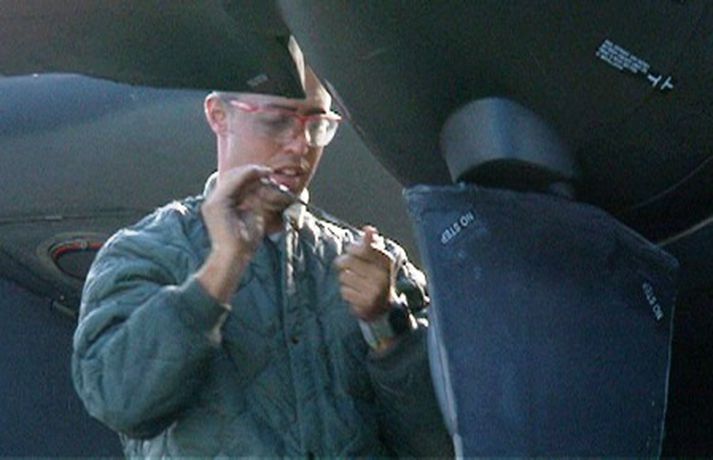 Talsverð hætta skapaðist þegar bandarísk herflugvél þurfti að nauðlenda á Keflavíkurflugvelli laust eftir klukkan sex í kvöld. Vélin missti afl á tveimur hreyflum af fjórum. Tilkynning barst um hálf fimm leytið í dag um að bandarísk herflugvél af gerðinni Herkúles hefði misst afl á einum hreyfli og óskaði eftir leyfi til nauðlendingar. Um 20 manns voru um borð í vélinni. Skömmu fyrir lendingu kom hins vegar í ljós að annar hreyfill, vinstra megin á vélinni hafði ofhitnað og var því talið að raunveruleg hætta hafi verið á ferð. Slökkt var á hreyflinum strax eftir lendingu. Herkúles vélin var á leið til Afganistan með viðkoma í Englandi en er nú föst á Íslandi þar til gert hefur verið við vélina. Herkúles vélin ber viðurnefnið „Team Shadow".Mynd/Páll KetilssonHermaður við viðgerðarstörfMynd/Páll KetilssonAfl fór úr einum hreyfli og annar ofhitnaði.Mynd Páll KetilssonHerkúles vélin lendir á KeflavíkurflugvelliMynd/Páll Ketilsson