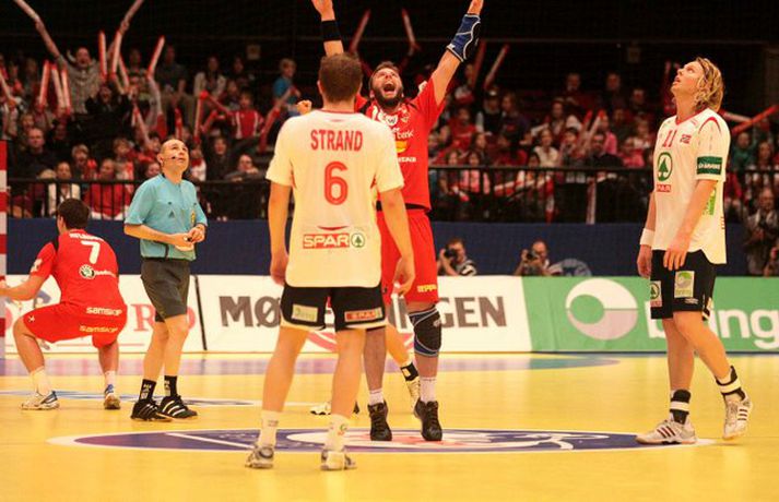 Ísland-Noregur - Myndasyrpa Henry Birgir Gunnarsson skrifar 29. janúar 2010 16:45 Strákarnir fagna sigrinum í gær. Mynd/DIENER Gleðin var fölskvalaus hjá strákunum okkar í gær þegar þeir tryggðu sig inn í undanúrslitin á EM í Austurríki með glæsilegum sigri á Norðmönnum. Hið geðþekki ljósmyndari Vísis og Fréttablaðsins, Georg Diener, var með vélina á lofti og myndaði stemninguna í Wiener Stadthalle. Myndasyrpu Georgs má sjá í albúminu hér að neðan. Hægt er að sjá myndirnar stærri með því að smella á þær. DIENERDIENERDIENERDIENERDIENERDIENERDIENERDIENERDIENERDIENERDIENERDIENERDIENERDIENERDIENERDIENERDIENERDIENERDIENERDIENER Mest lesið „Gaf frá mér hljóð sem enginn maður á mínum aldri á að gefa frá sér“ Körfubolti „Trúi ekki að ég hafi beðið í 17 ár eftir grænum jakka“ Golf Snorri og Arnór eftirsóttir: Áhugi erlendis frá en HSÍ enn í forgangi Handbolti Segir ekkert vit í afsökunum Valsmanna Íslenski boltinn Sjáðu öll mörkin úr fyrstu umferð Bestu deildarinnar Íslenski boltinn „Ef hann lítur á þetta sem leikaraskap þá er hann á rangri hillu“ Íslenski boltinn Í slæmum málum fyrir að hrópa á McIlroy: „Færðu mér son minn aftur“ Golf Besta sætið: Hættið þessu rugli og fagnið mörkunum ykkar Sport Tottenham að landa Robertson en það er einn stór hængur á Enski boltinn Strangar reglur í kringum græna Masters-jakkann Golf Fleiri fréttir Bjarki klikkaði ekki á skoti í toppslagnum Með gæsahúð um allan líkamann í kveðjuleiknum Snorri og Arnór eftirsóttir: Áhugi erlendis frá en HSÍ enn í forgangi Stelpurnar okkar í neðsta styrkleikaflokki fyrir EM Ómar með fjórtán og Gísli skoraði alltaf Uppgjörið: Ísland - Portúgal 32-24| Ísland er á leiðinni á EM EM-sæti í húfi: „Mjög spennt að sjá hvar við stöndum núna“ Rekinn án skýringa og ætlar í mál Úrslitaleikur um EM-sæti: „Á ekki von á því að það komi fyrir aftur“ Ótrúlegt flug undir stjórn Guðjóns og Haukur bjó til helming marka Löwen Stjarnan einum sigri frá því að halda sér uppi Margt sem þarf að laga „Þetta er ákveðin skák“ Haukar - FH 27-22 | Haukar jöfnuðu Hafnarfjarðarslaginn Björgvins Halldórssonar minnst með einnar mínútu þögn „Margir sem töldu þetta vera galin skipti fyrir rúmu ári síðan“ „Heyrum varla í hvor öðrum“ Svartfellingar gerðu stelpunum okkar góðan greiða Blær situr sem límdur við botninn Arnór með bakið upp við vegg en Einar fagnar KA - Valur 30-33 | Svöruðu fyrir sig en tókst ekki að landa sigri „Ég vildi óska þess að ég hefði ekki verið svona mikið veik“ Sagt upp störfum hjá Aftureldingu Stjarnan með sterka yfirlýsingu í fyrsta leik Titilvörnin hefst vel hjá Óðni Janus fagnaði jafntefli og mætir Magdeburg næst Uppgjörið: Færeyjar - Ísland 35-30 | Valtað yfir stelpurnar okkar í Þórshöfn „Allt of margir leikmenn sem þurfa að stíga upp“ „Þetta er margfræg klisja“ „Tel mig vera rosalegan stemningskarl“ Sjá meira