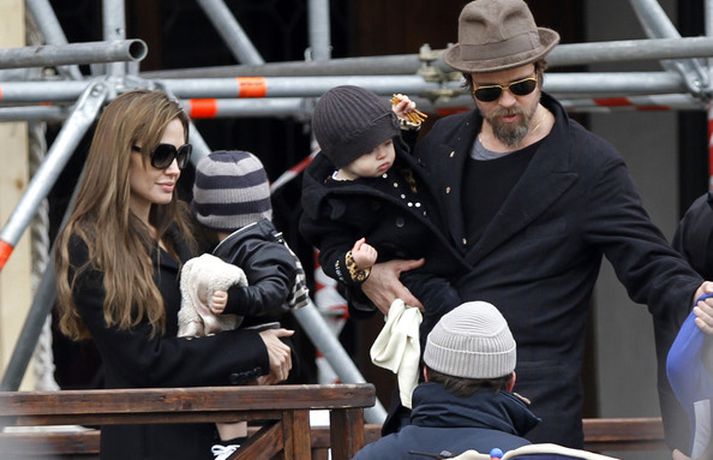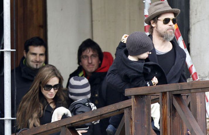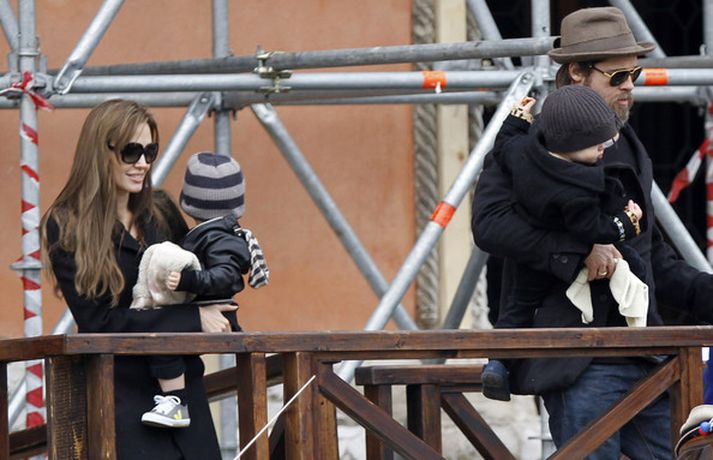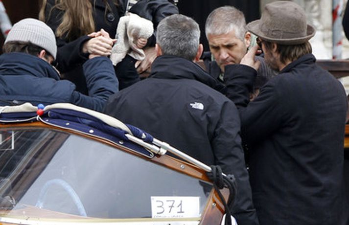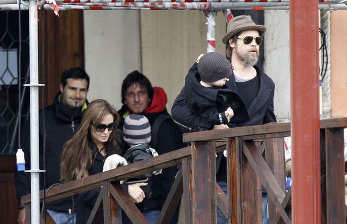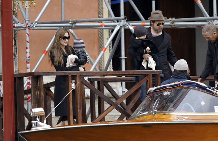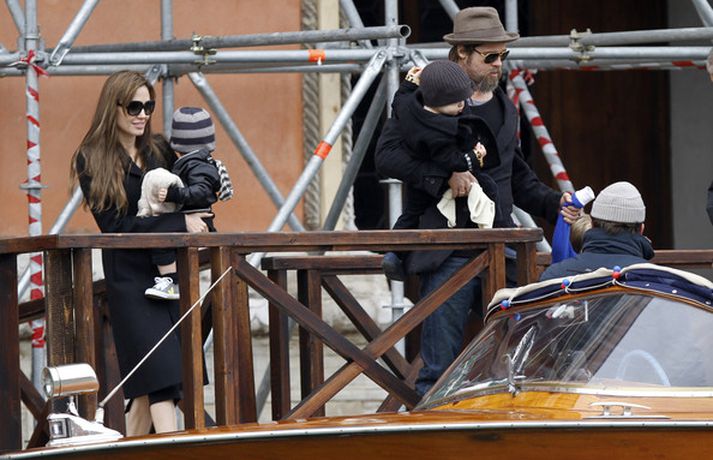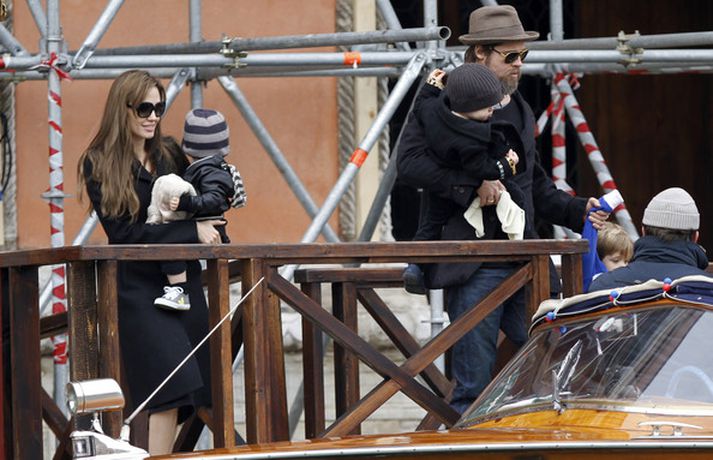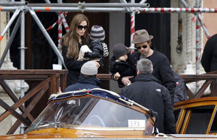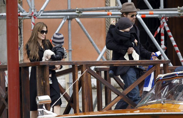 Leikaraparið Angelina Jolie og Brad Pitt gengu um borð á bát í Feneyjum í gærdag með tvíburana Knox og Vivienne. „Mér hefur aldrei líkað líkamleg snerting. Fólk hefur haft orð á því að ég héldi niður í mér andanum þegar ég er föðmuð. Ég geri það ennþá," sagði Angelina. Skoða má parið betur í myndasafni.