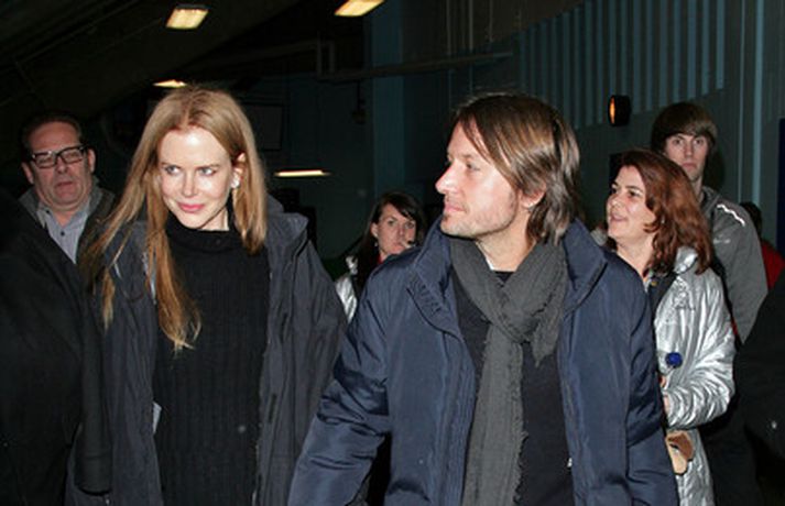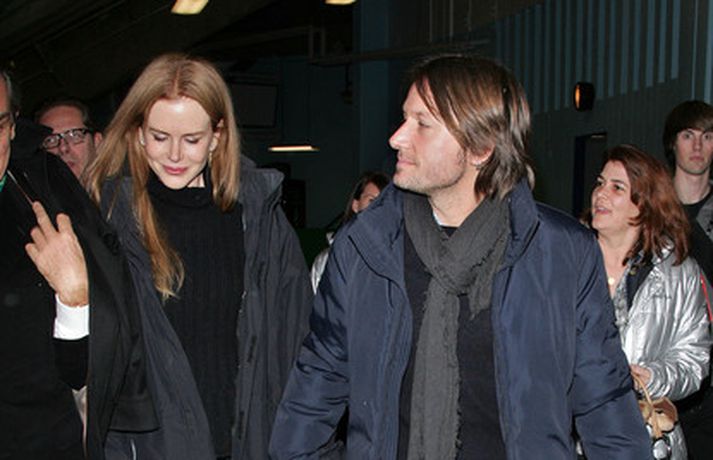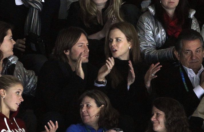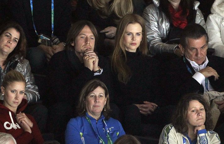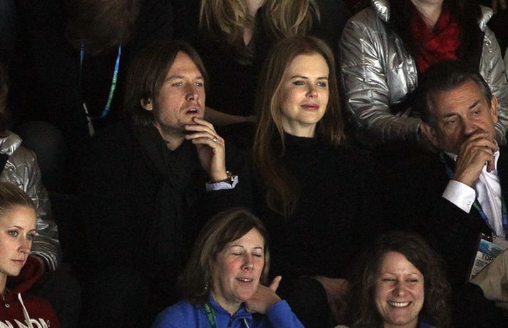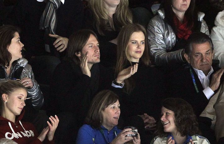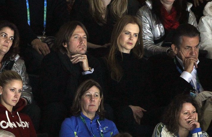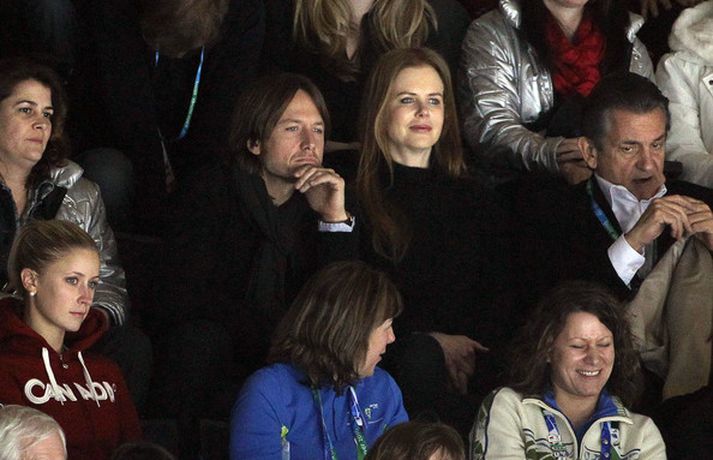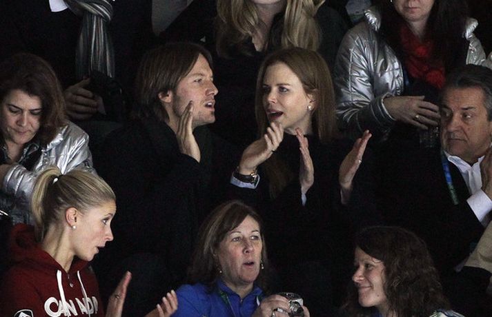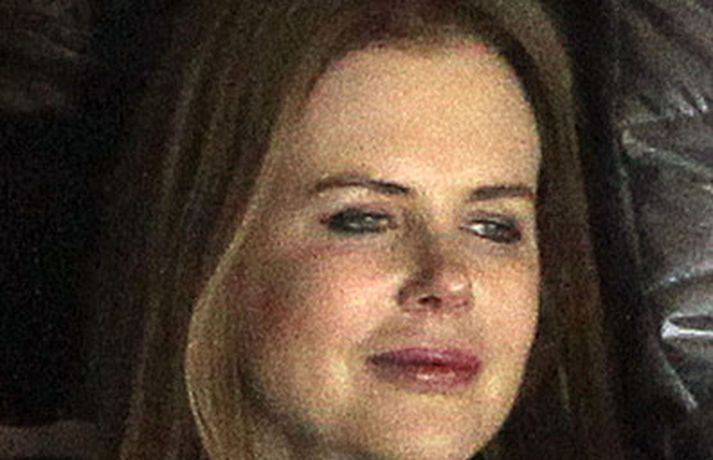 Leikkonan Nicole Kidman, 42 ára, og eiginmaður hennar, Keith Urban, mættu á skautadanssýningu í Kanada í gær. „Til hvers að gera eitthvað gott ef enginn er að horfa," sagði Nicole. Bótoxi er sprautað undir húðina til að lama hrukkur og fylla upp í húðina svo hún sýnist unglegri. Eins og meðfylgjandi myndir sýna var eitthvað ekki rétt við andlitið á Nicole í gær. Greinilega má sjá að andlit leikkonunnar var stokkbólgið öðru megin.