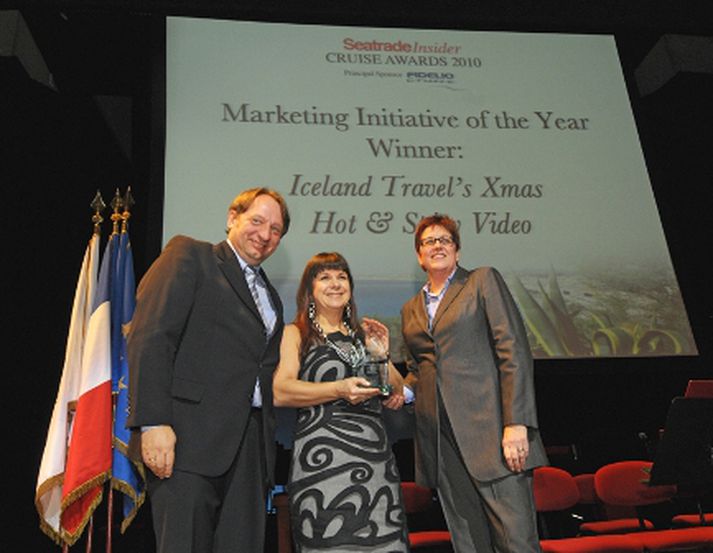 Ferðaskrifstofan Iceland Travel hlaut í síðustu viku virt verðlaun á sviði ferðaþjónustu fyrir besta markaðsframtak ársins á árlegri uppskeruhátíð Seatrade Insider, en það er eitt stærsta fagtímarit heims á sviði skemmtiferðasiglinga. Í tilkynningu segir að Iceland Travel þjónusti mörg stærstu skipafélög heims á hverju sumri með því að skipuleggja dagsferðir fyrir farþega þeirra skipa sem koma við á Íslandi á hverju sumri. Markaðsframtakið fólst í endurgerð á laginu "Walking in a Winter Wonderland" sem starfsmenn fyrirtækisins tóku upp og sendu til allra samstarfsaðila, viðskiptavina og tengiliða sinna á síðasta ári. Myndbandið var framleitt innanhúss að öllu leyti og vakti mikla lukku á meðal þeirra skipafélaga sem eru í viðskiptum við Iceland Travel. Verðlaunin voru afhent í óperuhúsinu í Nice í Frakklandi að viðstöddum öllum helstu áhrifamönnum skemmtiskipaiðnaðarins. "Þessi verðlaun veita okkur mikinn meðbyr hjálpa okkar fyrirtæki við að markaðssetja Ísland sem áhugaverðan áfangastað fyrir skemmtiferðaskip. Allir þeir sem taka ákvarðanir í þessum bransa voru þarna samankomnir og fengu þannig smjörþefinn af því sem Ísland býður upp á sem áfangastaður. Viðbrögðin sem við höfum fengið í kjölfarið hafa verið mjög jákvæð," segir Helgi Eysteinsson, framkvæmdastjóri Iceland Travel. Í umsögn dómnefndar sagði meðal annars að einfaldleiki myndbandsins hefði verið heillandi, en umfram allt væri það frumlegt og skemmtilegt.