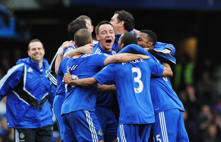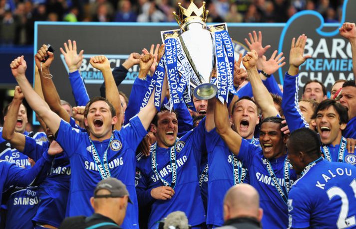 Fögnuður Chelsea - myndir Henry Birgir Gunnarsson skrifar 9. maí 2010 19:15 Nordic Photos/Getty Images Gleði leikmanna og stuðningsmanna Chelsea í dag var fölskvalaus enda var félagið að vinna sinn fyrsta titil í fjögur ár. Chelsea slátraði Wigan 8-0 og er verðskuldaður Englandsmeistari. Það ætlaði svo allt um koll að keyra er John Terry lyfti sjálfum Englandsbikarnum. Hægt er að sjá fögnuð Chelsea-manna í myndaalbúminu hér að neðan. Mest lesið Syrgja átján ára fimleikakonu Sport Hafnaði 34 milljónum: „Vil ekki styðja kerfi sem býr til fíkn og eyðileggur líf“ Sport Arnar Þór ráðinn til FIFA: „Himinlifandi að hafa fengið þetta starf“ Fótbolti Fyrsta mark Wirtz í þriðja sigrinum í röð Enski boltinn Írar ætli að fylgja eftir tillögu Heimis Fótbolti Watkins hélt ótrúlegri sigurgöngu Villa áfram Enski boltinn Arsenal aftur á toppinn Enski boltinn Gerir grín að klæðaburði liðsfélaga síns Körfubolti Salah sakaður um dýfu: „Getum ekki keppt við Egypta og dómarana“ Fótbolti Haukur náði hundrað og hundrað fyrir EM Handbolti Fleiri fréttir Liverpool-skotmarkið ekki á förum í janúar Aldrei spilað þarna en sagði strax já „Viss um að ég myndi skora einn daginn“ Watkins hélt ótrúlegri sigurgöngu Villa áfram Schade og Jiménez sendu Brentford og Fulham í efri hlutann Arsenal aftur á toppinn Fyrsta mark Wirtz í þriðja sigrinum í röð Cherki aðalmaðurinn í sigri City Úlfarnir heiðruðu minningu Jota Andri Lucas frá í mánuð Sjáðu dönsku þrumuna sem færði United-mönnum öll þrjú stigin Segir að Arsenal stefni á sögulega fernu á þessu tímabili Amorim endaði viðtalið á gamansömum nótum „Við eigum heima í Evrópu“ Daninn skaut Man. United upp fyrir Liverpool Amorim segir strákinn í frystinum vera framtíðin hjá Man. United Martinez með fyrirliðabandið og báðir Fletcher-bræðurnir á bekknum Havertz gæti snúið aftur á næstu dögum Alfons og Willum sáu tvö rauð spjöld fara á loft Synir Diogo Jota leiða leikmenn út á Anfield Cunha vill skemmta og Howe treystir leikmönnum United horfir til Þýskalands eftir höfnun Semenyo Haaland stóðst vigtun eftir jólin Hápunktarnir hingað til í enska boltanum Goðsögn fallin frá Kærður af knattspyrnusambandinu Bestu jólamörkin: Drogba, Scholes eða Giroud? Van de Ven bað Isak afsökunar: „Vildi ekki meiða hann“ Hvers vegna heillast stórliðin svo af Semenyo? Stewart, Snoop og Modric í eina sæng Sjá meira