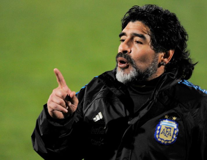 Þær Dalma og Giannina, dætur Diego Maradona landsliðsþjálfara Argentínu vilja að hann skilji eftir æfingagallann upp á hóteli og klæðist jakkafötum á hliðarlínunni þegar Argentína er að spila. Þetta sagði Dalma sem er nú komin til Suður-Afríku. „Ég ætla að bíða eftir því að Giannina komi því hún hefur meira tískuvit en ég," sagði hún við fjölmiðla. „En við ætlum að biðja hann um að fara í jakkaföt," bætti hún við. Dalma sagði einnig að Maradona hefði lagt mikið af undanfarið og væri nú fimmtán kílóum léttari. „Hann getur núna hlaupið með á æfingum," sagði hún. Maradona er nú með myndarlegt alskegg en Dalma sagði það eiga sínar skýringar. „Hann hefur ekki rakað sig síðan hundurinn réðst á hann. Skeggið er til að fela örið sem hann fékk." Maradona þurfti að fara í aðgerð eftir að einn hundanna hans beit hann í andlitið nú í mars síðastliðnum. Dæturnar hafa því gefið grænt ljós á skeggið en hann þarf þó að skipta út æfingagallanum fyrir almennileg jakkaföt.