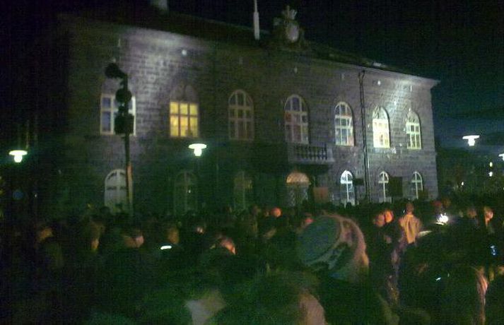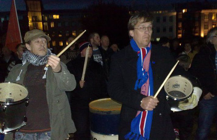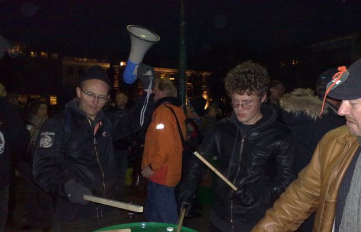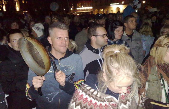 Páll Óskar með pönnu á Austurvelli - myndir 4. október 2010 21:52 Páll Óskar ber pönnuna með stæl. Tónlistarmaðurinn Páll Óskar Hjálmtýsson er einn hinna fjölmörgu sem mættir eru fyrir utan Alþingishúsið á Austurvelli. Hann ber þar pönnu með sleif, taktfastur að vanda. Ljósmyndari Vísis náði mynd af Páli Óskari með pönnuna rétt í þessu. Sjá má hana í myndasafninu hér að neðan auk annarra mynda sem fanga andrúmsloft kvöldsins í miðbænum. Þær eru ýmist teknar á síma eða myndavél. Þarna má sjá flugelda springa yfir Alþingishúsinu, elda brenna á Austurvelli, tunnutrommara, óeirðarlögreglu og fleira. Mest lesið Töframaður lúbarinn í Garðabæ: „Ég hélt að þetta væri búið“ Innlent „Ég spyr hvernig hefði farið ef ég hefði ekki lifað þetta af“ Innlent „Liggur maður þarna á jörðinni og það var verið að berja hann í stöppu“ Innlent Segir af sér þingmennsku að ákveðnu skilyrði uppfylltu Innlent Spennt að mæta fyrrverandi yfirmanni í kappræðum Innlent Dróni hæfði farþegarútu fulla af námuverkamönnum Erlent Líkurnar á lækkun „mjög litlar“ Innlent „Á yfir höfði sér kærur vegna fjölda umferðarlagabrota“ Innlent Listamenn safna fyrir 10 ára dreng á Selfossi í dag Innlent Lést á sjúkrahúsi mánuði eftir harmleikinn Erlent Fleiri fréttir Dyravörður tók gest kverkataki Geta stórbætt þjónustu fyrir þau sem greinast með krabbamein Segir af sér þingmennsku að ákveðnu skilyrði uppfylltu Sáttamiðlun úrræði sem væri alls ekki fyrir alla þolendur Spennt að mæta fyrrverandi yfirmanni í kappræðum Dagur kvenfélagskonunnar er í dag 1. febrúar Líkurnar á lækkun „mjög litlar“ Mótmæla og biðla til utanríkisráðherra Nýir oddvitar og sáttameðferð í kynferðisbrotamálum Töframaður lúbarinn í Garðabæ: „Ég hélt að þetta væri búið“ Listamenn safna fyrir 10 ára dreng á Selfossi í dag „Ég spyr hvernig hefði farið ef ég hefði ekki lifað þetta af“ Sprengisandur: Laxeldi, verðbólga og falsfréttir Grunaður um stórfellda líkamsárás „Á yfir höfði sér kærur vegna fjölda umferðarlagabrota“ Ölvuð kona grunuð um að valda umferðarslysi á rafhlaupahjóli Hlýnandi veður í dag og „meinlaus austanlægð“ í kortunum Hilmar Gunnarsson er oddviti í Mosfellsbæ Vilhjálmur Árnason leiðir Sjálfstæðismenn í Reykjanesbæ Baráttan hafi verið Viðreisn til sóma „Lúxusvandamál“ að velja og hafna á listann Stöðvuðu stolinn bíl með naglamottu eftir eftirför um alla borg Sjálfstæðismenn í Reykjanesbæ velja sér oddvita „Vinna er heilsuefling“ Björg sökuð um brot á kosningareglum Viðreisnar Blótað í Grindavík á nýjan leik Vaktin: Björg Magnúsdóttir leiðir lista Viðreisnar í borginni „Liggur maður þarna á jörðinni og það var verið að berja hann í stöppu“ Vilja Hjallastefnugrunnskóla í Árborg Skjálftinn í Bárðarbungu 5,3 að stærð Sjá meira
