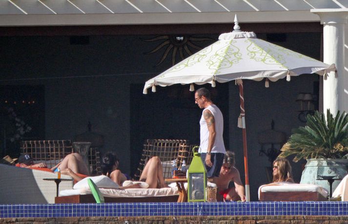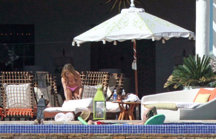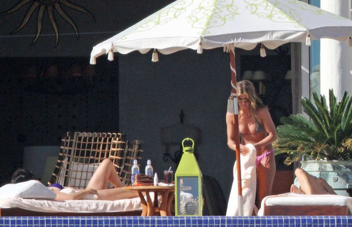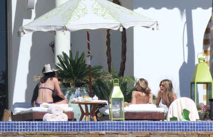 Leikkonan Jennifer Aniston, 40 ára, er stödd í Cabo San Lucas í Mexíkó. Þar ætlar hún að halda upp á 41 árs afmælið sitt með vinum sínum, Courteney Cox, David Arquette og Sheryl Crow, 11. febrúar næstkomandi. Í myndasafni má sjá Jennifer spranga um á bikiní og vini hennar.