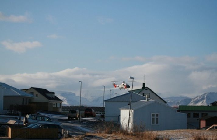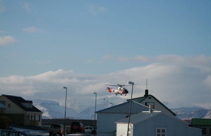 Þyrla Landhelgisgæslunnar er að flytja mann á slysadeild Landspítalans eftir að eldur kom upp í íbúðarhúsi í Stykkishólmi í morgun. Óttast er að hann hafi hlotið alvarleg brunasár.Mynd/ Bjarni.Hjá Brunavörnum Stykkishólms og nágrennis fengust þær upplýsingar að búið væri að slökkva eldinn. Slökkviliðið er þó enn á staðnum. Landhelgisgæslan er í tveimur útköllum eins og stendur. Hitt er vegna aflvanabáts norður af Viðey. Ekki fást meiri upplýsingar um málin eins og stendur.