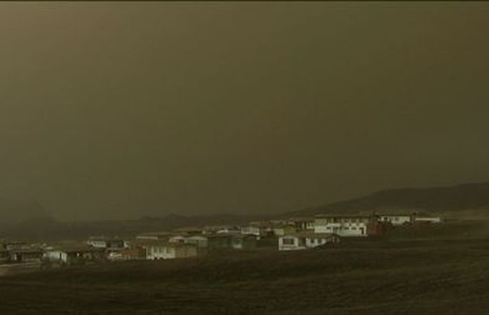 Dimmt öskumistur yfir Vestmannaeyjum Jón Hákon Halldórsson skrifar 15. maí 2010 11:39 Dimmt öskumistur var yfir Vestmannaeyjum í morgun. Mynd/ Gísli. Gosmökkurinn frá Eyjafjallajökli sást vel frá Vestmannaeyjum í gær. Að sögn Gísla Óskarssonar fréttaritara í Vestmannaeyjum virtist sem öskuskýið breiddi úr sér eins og sveppahattur út frá stróknum. Nokkur aska féll í nótt eins og sjá mátti á þeim stöðum sem höfðu verið hreinsaðir af ösku sem féll gær. Laust yfir hálf ellefu í morgun mátti sjá hvernig öskuskýið breiddi sig út frá eldstöðinni að Vestmannaeyjum og suður fyrir þær. Skýið dróst síðan hægt til norðurs og yfir Heimaey. Nú er dimmt öskumistur yfir kaupstaðnum með tilheyrandi öskufalli. Gísli fréttaritari segir að það logi ljós á öllum ljósastaurum og jafnframt loga ljós inni í mörgum húsanna. Gísli Óskarsson tók myndirnar sem fylgja þessari frétt. Mest lesið Sex handteknir og um verulegt magn sterkra efna að ræða Innlent Hafi selt alls konar fíkniefni í gegnum „Kannabis Inc“ Innlent „Ég reikna sterklega með því að karma banki upp á hjá þeim“ Innlent Góðkunningjar lögreglu grunaðir í stóru dópmáli Innlent Segist ekki munu biðja páfa afsökunar Erlent Hyggst banna mánaðarlega hækkun leigu Innlent Áfrýja ekki dómi vegna dauða dóttur þeirra Innlent Svikarar við þjóðina verði dregnir til ábyrgðar Erlent Unnar kjötvörur af matseðli í skólum: „Stranglega bannað að hafa pylsupartý“ Innlent Vara dýraeigendur við: Gruna að eitrað hafi verið fyrir tveimur dýrum Innlent Fleiri fréttir „Þyngra fyrir fæti að fá vinnu“ Hælisleitendamálin settu þrýsting á Reykjanesbæ Vilja verða áheyrnarfulltrúar og hækka laun sín gríðarlega Unnar kjötvörur af matseðli í skólum: „Stranglega bannað að hafa pylsupartý“ Sex handteknir og um verulegt magn sterkra efna að ræða Ekki hægt að taka framboð gilt þó flokkur misskilji reglur Góðkunninginn í vikulangt gæsluvarðhald vegna smygls Kvikuhlaup enn líklegasta sviðsmyndin Áfrýja ekki dómi vegna dauða dóttur þeirra Slökkti í málskotsbeiðni Matvís vegna Flame Sundlaugar opnar lengur um helgar í sumar Hyggst banna mánaðarlega hækkun leigu Ari hlær að gagnrýni á myndbandið Kosningapallborð fréttastofu: Baráttan um Reykjanesbæ Fimm hundruð bleikjur sluppu úr landeldisstöð „Ég reikna sterklega með því að karma banki upp á hjá þeim“ Betur fór en á horfðist við Mývatn: Lenti á þvervegi og tókst á loft Ekkert að frétta af rannsókn þjófnaðarins í Freysnesi Góðkunningjar lögreglu grunaðir í stóru dópmáli Byrja ekki að sekta á morgun Bein útsending: Alþjóðasamvinna á krossgötum Þörf eftir sértæku húsnæði fyrir yngri en 25 muni „fara verulega vaxandi“ Hafi selt alls konar fíkniefni í gegnum „Kannabis Inc“ Milljarðar gætu farið í að flytja íslenskt sorp úr landi Neitar að hafa beitt fósturbörnin á Gauksstöðum ofbeldi Vara dýraeigendur við: Gruna að eitrað hafi verið fyrir tveimur dýrum Gæti sektað flugstjóra um allt að átta milljónir króna Óvarfærið orðalag geti orðið til vandræða í áratugi Kristrún hafi staðið sig best en Inga verst Þögul sem gröfin um meintan trúnaðarbrest Sjá meira