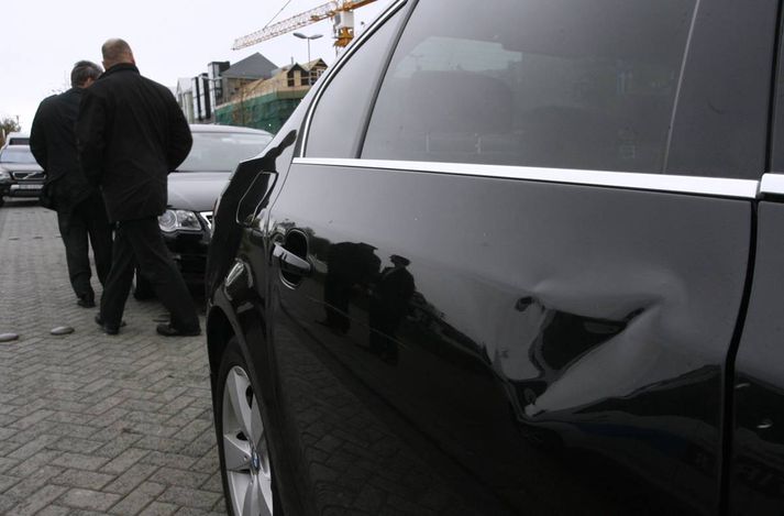 Ráðherrabíll Steingríms J. Sigfússonar fjármálaráðherra er töluvert skemmdur eftir mótmæli gærkvöldsins. Hópur mótmælenda umkringdi ráðherrann þegar hann ók frá Alþingishúsinu að þingfundi loknum. Bíllinn var barinn að utan og er hann nokkuð dældaður eins og meðfylgjandi myndir sýna. Þá er sprunga í framrúðu bílsins.Talið er að tjónið geti hlaupið á hundruðum þúsunda króna.MYND/PjeturMYND/PjeturMYND/PjeturMYND/PjeturMYND/Pjetur