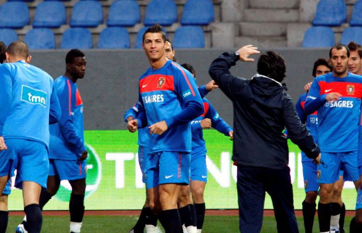 Cristiano Ronaldo á Laugardalsvelli - myndir Henry Birgir Gunnarsson skrifar 12. október 2010 08:00 Mynd/Anton Það var mikið fjölmiðlafár á Laugardalsvelli í gær þegar Cristiano Ronaldo og félagar í portúgalska landsliðinu mættu þangað á æfingu. Anton Brink, ljósmyndari Fréttablaðsins og Vísis, var á svæðinu og myndaði knattspyrnugoðið í bak og fyrir. Sjá má myndirnar í albúminu hér að neðan. Mest lesið Stjórnin leyst frá störfum eftir að tólf ára drengur drukknaði Sport Syrgja átján ára fimleikakonu Sport Ekkert bit í snáknum: „Hörmulegur og ætti að hætta“ Sport Hafnaði 34 milljónum: „Vil ekki styðja kerfi sem býr til fíkn og eyðileggur líf“ Sport Arnar Þór ráðinn til FIFA: „Himinlifandi að hafa fengið þetta starf“ Fótbolti Daninn skaut Man. United upp fyrir Liverpool Enski boltinn Gerir grín að klæðaburði liðsfélaga síns Körfubolti Samþykkja hvern Rússann á fætur öðrum inn á Ólympíuleikana Sport Írar ætli að fylgja eftir tillögu Heimis Fótbolti Fyrsta mark Wirtz í þriðja sigrinum í röð Enski boltinn Fleiri fréttir Liverpool-skotmarkið ekki á förum í janúar Skoraði og fékk gult fyrir að benda Juventus stigi frá toppnum Aldrei spilað þarna en sagði strax já „Viss um að ég myndi skora einn daginn“ Mané tryggði Senegal stig Watkins hélt ótrúlegri sigurgöngu Villa áfram Schade og Jiménez sendu Brentford og Fulham í efri hlutann Arsenal aftur á toppinn Fyrsta mark Wirtz í þriðja sigrinum í röð Þjálfari Þóris sá rautt í tapi fyrir Fabregas Salah sakaður um dýfu: „Getum ekki keppt við Egypta og dómarana“ Arnar Þór ráðinn til FIFA: „Himinlifandi að hafa fengið þetta starf“ Tap hjá Tómasi í grannaslagnum og toppbaráttan harðnar Cherki aðalmaðurinn í sigri City Úlfarnir heiðruðu minningu Jota Enn tapa Albert og félagar Andri Lucas frá í mánuð Írar ætli að fylgja eftir tillögu Heimis Þjálfar 2. flokk samhliða því að spila fyrir KR Svakalegur derby-dagur fyrir Tómas Bent og félaga Sjáðu dönsku þrumuna sem færði United-mönnum öll þrjú stigin Segir að Arsenal stefni á sögulega fernu á þessu tímabili Sú besta í heimi ætlar sér að koma til baka löngu fyrir Íslandsleikinn Amorim endaði viðtalið á gamansömum nótum „Við eigum heima í Evrópu“ Malí tók stig af heimamönnum Daninn skaut Man. United upp fyrir Liverpool Amorim segir strákinn í frystinum vera framtíðin hjá Man. United Frönsk fótboltagoðsögn lést á jólunum Sjá meira