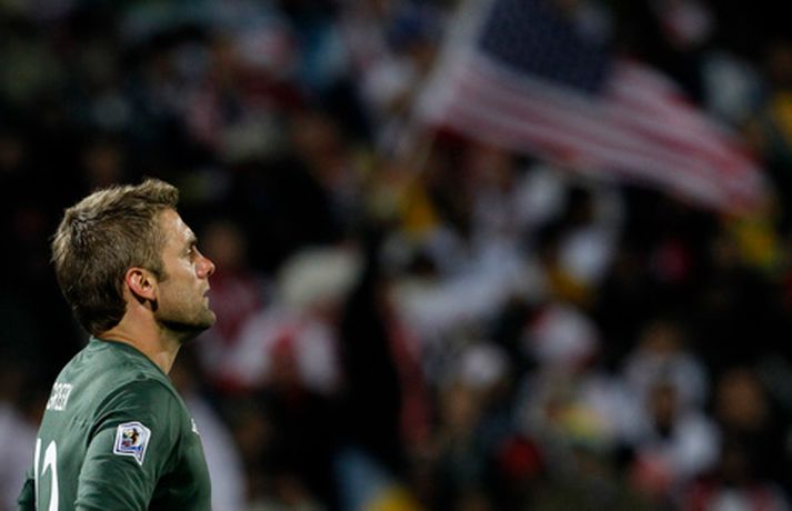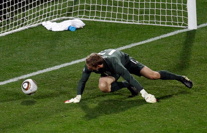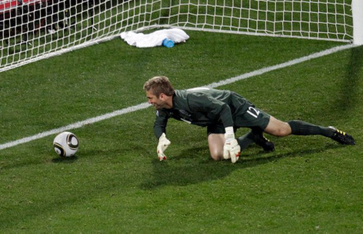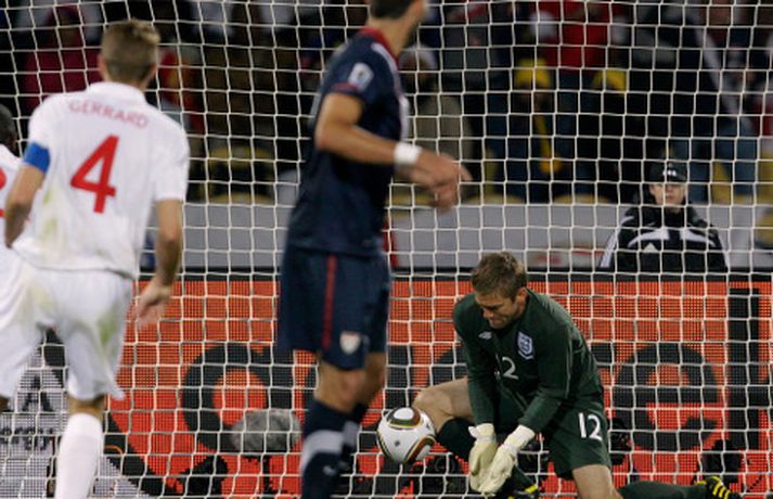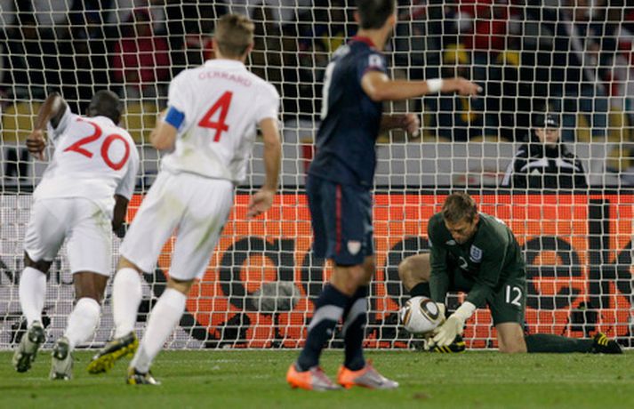 Robert Green fékk stóra tækifærið frá Fabio Capello, landsliðsþjálfara Englendinga, í fyrsta leik enska liðsins á HM í Suður-Afríku en það er ekki hægt að segja að markvörður West Ham hafi staðist pressuna eða launað ítalska þjálfaranum traustið. Green gerði hræðileg markvarðarmistök í jöfunarmarki Bandaríkjanna í fyrri hálfleik þegar hann missti laflaust skot Clint Dempsey sem lak síðan inn í markið. Ljósmyndarar AP-fréttastofunnar voru að sjálfsögðu með myndavélarnar stilltar þegar Green gerði þessi mistök og við höfum tekið saman smá myndasyrpu enda segja myndirnar meira en þúsund orð. Myndirnar má sjá í albúminu hér að neðan. Hægt er að sjá myndirnar stærri með því að smella á þær.Mynd/APMynd/APMynd/APMynd/APMynd/APMynd/APMynd/APMynd/APMynd/AP