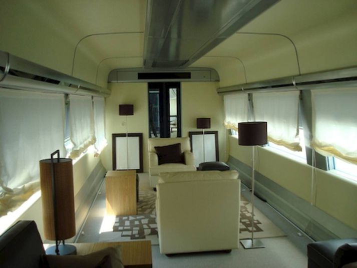 Dularfull DSB lest var gjöf til Gaddafi 18. febrúar 2011 10:11 Svona lítur lestin í Líbýu út að innan. Silvio Berlusconi forsætisráðherra Ítalíu hefur sennilega sent danska IC4 járnbrautarlest sem gjöf til Gaddafi leiðtoga Líbýu. Það er ítalska félagið Ansaldobreda sem sérsmíðar þessar lestar fyrir danska lestarfélagið DSB. Í umfjöllun Jyllands Posten um málið segir að í þessari viku hafa alveg óvænt birst mynd í þekktu alþjóðlegu tímariti um járnbrautir af IC4 lest á járnbrautarteinum í Líbýu. Í fyrstu var talið að Ansaldobreda hefði sent lestina þangað til prufukeyrslu. DSB hefur tjáð sig um málið en þar á bæ segja menn að þessar lestir séu í eigu Ansaldobreda þar til þær yfirgefi Ítalíu. Að öðru leyti vill stjórn DSB ekki tjá sig um málið. IC4 lestin í Líbýu er mjög frábrugðin þeim sem Danir fá hvað innréttinguna varðar. Þar er að finna stóra hvíta leðursófa, gólfteppi, gardínur og standlampa. Utan á lestinni er áritun á arabísku sem skilja má sem hyllingu til Gaddafi. Og í ljós er komið að lestin sást fyrst í landinu eftir opinbera heimsókn Berlusconi til Gaddafi nýlega. Mest lesið Bærinn bótaskyldur og þarf að bjóða líkamsræktarstöð út aftur Viðskipti innlent Virðist ekki vera hægt á Íslandi Viðskipti innlent Húðflúrari fór frá hálfkláruðum fugli á hálsi Neytendur Flogin frá Icelandair til Nova Viðskipti innlent „Áhyggjuefni ef fyrirtækin mæta þessu með semingi“ Neytendur Icelandair ræður þrjá nýja stjórnendur til starfa Viðskipti innlent Skattleysismörk barna yngri en 16 ára hækka Viðskipti innlent „Ég verð að segja að ég er svolítið hlessa“ Neytendur Frosti og Arnþrúður fá styrki Viðskipti innlent Kvartanir berast í hverri viku vegna gjafabréfa Neytendur Fleiri fréttir Ekkert verður úr TikTok-banni með nýjum samningi Hæstu stýrivextir í þrjátíu ár Höfnuðu yfirtökutilboði Paramount Messenger-forritið heyrir sögunni til Lofar að koma böndum á CNN Reyna fjandsamlega yfirtöku á Warner Bros. Kaup Netflix á hluta Warner Bros. gætu reynst „vandamál“ ESB sektar samfélagsmiðil Musk um milljarða Google birtir lista yfir vinsælustu leitarorðin Netflix í viðræðum um kaup á HBO frá Warner Bros Hringir viðvörunarbjöllum vegna samkeppni frá Google „Brunaútsala“ á hlutabréfum eftir eldsvoðann í Hong Kong Fjögurra billjóna hagnaður léttir fyrir fjárfesta Stefna Jóni Þorgrími vegna Rauða heftarans Segir engan óhultan ef gervigreindarbólan springur Trump fellir niður tolla á tugi matvæla Paramount, Comcast og Netflix vilja kaupa Warner Kári og Hannes stofna fyrirtæki: „Erum aðallega bara að velta fyrir okkur heiminum“ PlayStation 5 slær Xbox 360 við Reyna að halda sjaldgæfum málmum frá hernum Jensens Bøfhus lokað Samþykktu stærðarinnar launapakka Musks Græða á tá og fingri á svikum og prettum Fresta reynsluflugi rafmagnsflugvélar Segist engin deili kunna á rafmyntajöfri sem hann náðaði Sjá meira
