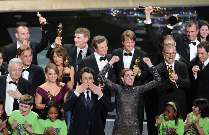 Breska myndin The King´s Speech sópaði að sér verðlaunum á Óskarsverðlaunahátíðinni. Hún var valin besta myndin, Colin Firth var valinn besti leikari í aðalhlutverki, leikstjórinn Tom Hooper var verðlaunaður auk þess sem handrit myndarinnar var valið besta upprunalega kvikmyndahandritið. Myndinn hafði verið spáð mikilli velgengni og komu verðlaunin því lítið á óvart. Natalie Portman hafði verið spáð Óskarnum fyrir hlutverk hennar í myndinni The Black Swan og gekk það eftir. Verðlaun fyrir besta leikara í aukahlutverki og bestu leikkonu í aukahlutverki féllu í skaut þeirra Christian Bale og Melissu Leo sem bæði léku í myndinni The Fighter. Mikið var um dýrðir á hátíðinni eins og sjá má í meðfylgjandi myndasafni. Þar má meðal annars sjá Natalie Portman taka við verðlaununum en hún er langt komin á leið með fyrsta barn sitt og dansarans Benjamin Millepied sem hún kynntist við tökur á myndinni.Hér fer listi yfir öll helstu verðlaun sem veitt voru á hátíðinni: Besta myndin: The King´s Speech Besti leikarinn: Colin Firth í The King´s Speech Besta leikkonan: Natalie Portman í The Black Swan Besti leikari í aukahlutverki: Christian Bale í The Fighter Besta leikkona í aukahlutverki: Melissa Leo í The Fighter Besti leikstjórinn: Tom Hooper fyrir The King´s Speech Besta teiknimyndin: Toy Story 3 Besta upprunalega handritið: The King´s Speech Besta handrit byggt á áður útgefnu efni: The Social Network Besta erlenda kvikmyndin: In a Better World frá Danmörku Besta listræna leikstjórn: Alice in Wonderland Besta upprunalega lagið: We belong together úr Toy Story 3 Besta upprunalega tónlistin: Trent Reznor og Atticus Ross fyrir The Social Network Besta heimildamyndin: The Inside Job Besta klipping: The Social Network Besta förðun: The Wolfman Besta hljóðklipping: Inception Besta hljóðblöndun: Inception Bestu tæknibrellur: Inception Besta stutta heimildamyndin: Strangers No More Besta tölvugerða heimildamyndin: The Lost Thing Besta leikna stuttmyndin: God of Love Besta kvikmyndatakan: Inception