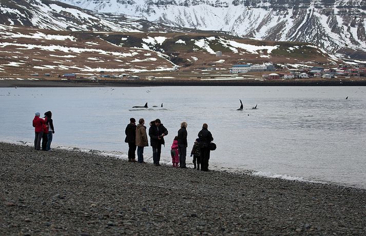 Háhyrningarnir enn í Breiðafirði 25. febrúar 2011 11:29 Háhyrningarnir voru komnir næstum alveg upp í fjöru. Mynd/ Tómas Freyr. Háhyrningarnir sem eltu síldina næstum alveg upp í fjöru í Grundarfirði á sunnudaginn hafa fært sig um set. „Þeir eru aðeins hérna fyrir utan. Þeir eru að elta loðnu sem er hérna á Breiðafirði," segir Tómas Freyr Kristjánsson, skrifstofumaður og sjúkraflutningamaður, sem náði hreint stórkostlegum myndum af háhyrningunum við Grundarfjörð á sunnudaginn. Tómas segir að það hafi verið alveg magnað að sjá hvalina svona nálægt landi á sunnudaginn. Í meðfylgjandi myndaalbúmi má sjá myndir sem Tómas tók á sunnudaginn en einnig þrjár myndir sem Halldór Jóhannesson skipstjóri á Blíðu KE 17 smellti af. Mest lesið Hrindir af stað söfnun fyrir móður stúlkunnar sem lést í Suður-Afríku Innlent Sprengdu rússneskan hershöfðingja í loft upp í Moskvu Erlent Naut aðstoðar samskiptasérfræðinga vegna veiðigjaldamálsins Innlent Undirbúningur árásarinnar stóð yfir í marga mánuði Erlent Trump skipar sendifulltrúa fyrir Grænland Erlent Málið sem Trump getur ekki losað sig við Erlent Varð vitni að ótrúlegum norðurljósum: „Mér fannst þetta magnað“ Innlent Breiddi út faðminn fyrir rasista: „Þið þurfið ekki að biðjast afsökunar á að vera hvít lengur“ Erlent „Þetta hefur verið þungur tími“ Innlent „Ég vil ekki nokkurn tímann sjá neitt svona aftur“ Innlent Fleiri fréttir „Þetta hefur verið þungur tími“ Naut aðstoðar samskiptasérfræðinga vegna veiðigjaldamálsins Hrindir af stað söfnun fyrir móður stúlkunnar sem lést í Suður-Afríku Varð vitni að ótrúlegum norðurljósum: „Mér fannst þetta magnað“ Færir nýársboðið fram á þrettándann Fjórir fluttir á sjúkrahús eftir bílveltu á Suðurlandi Leggur aftur til hverfislögreglustöð í Breiðholti Nú má heita Love, Tóní, Ranimosk og Draumur Kvartar til umboðsmanns og vonar að Vegagerðin sjái að sér Ætlar ekki að beita sér í máli starfsmanns Útlendingastofnunar „Ég vil ekki nokkurn tímann sjá neitt svona aftur“ Gyðingar á Íslandi upplifa aukinn ótta Ferðaþjónusta blómstrar í uppsveitum Árnessýslu „Þetta er bara ljótt“ Hljóti að vera komið að því að skoða öryggisgæslu við skóla Ætlar að skýra hvenær rjúfa megi þagnarskyldu Þagnarskylda heilbrigðisstarfsfólks og öryggisgæsla við grunnskóla Eyjólfur í orlof og Inga þrefaldur ráðherra Vegagerðin segir flóðin í Vík fyrirséð Fjölmiðlar, bókmenntir og hægrimennska á Sprengisandi „En hver sagði að þetta ætti að vera auðvelt?“ Milljónir til almannatengla og átta sinnum meira en í fyrra Grunuð um að koma til landsins til að brjóta á öldruðum Leggja hald á skip á alþjóðahafsvæði undan ströndum Venesúela Bindur vonir við Vor til vinstri Systir og amma drengs í meðferð létust í Suður-Afríku „Við erum pottþétt að koma út í mínus, hversu miklum vitum við ekki“ „Þetta er alveg ásættanlegur samningur“ Deildi nöfnum skjólstæðinga á Instagram Íslendingar þægileg fórnarlömb fyrir vasaþjófa Sjá meira