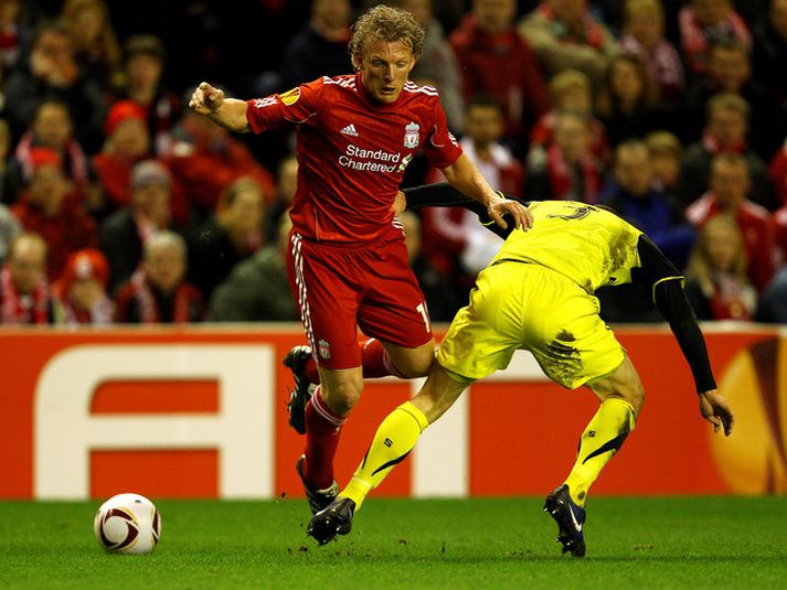 Hollendingurinn Dirk Kuyt var hetja Liverpool í seinni leik liðsins á móti tékkneska liðinu Spörtu Prag á Anfield í kvöld en Kuyt skoraði eina mark leiksins fjórum mínútum fyrir leikslok. Liverpool mætir Lech Poznań eða Braga í 16 liða úrslitum en seinni leikur þeirra fer fram seinna í kvöld. Liverpool var mun hættulegri aðilinn í leiknum á Anfield í kvöld en það tók þá samt langan tíma að ná markinu. Fyrri leiknum lauk með markalausu jafntefli í Tékklandi í síðsutu viku og liðin voru því búin að spila í 175 markalausar mínútur þegar Dirk Kuyt skoraði. Dirk Kuyt skoraði markið sitt með skalla úr markteig eftir hornspyrnu frá Raúl Meireles. Skömmu áður hafði Liverpool orðið fyrir áfalli þegar Daninn Daniel Agger fór meiddur af velli. Liverpool vann þar með fyrsta Evrópuleik sinn á Anfield undir stjórn Kenny Dalglish en ensk félög voru í banni frá Evrópukeppnum þegar hann stjórnaði liðinu á árunum 1985 til 1991. Úrslit leikja í Evrópudeildinni í kvöld:Zenit St Petersburg-Young Boys 3-1 (4-3 samanlagt)Bayer Leverkusen-Metalist Kharkiv 2-0 (6-0) 1-0 Simon Rolfes (47.), 2-0 Michael Ballack (70.)Liverpool-Sparta Prag 1-0 (1-0) 1-0 Dirk Kuyt (86.)PSV-Lille 3-1 (5-3)Spartak Moskva - Basel 1-1 (4-3)Sporting Lissabon-Rangers 2-2 (3-3, Rangers áfram) 0-1 El-Hadji Diouf (20.), 1-1 Pedro Mendes (42.), 2-1 Yannick Djaló (83.), 2-2 Maurice Edu (90.)