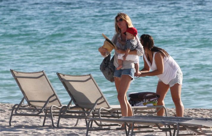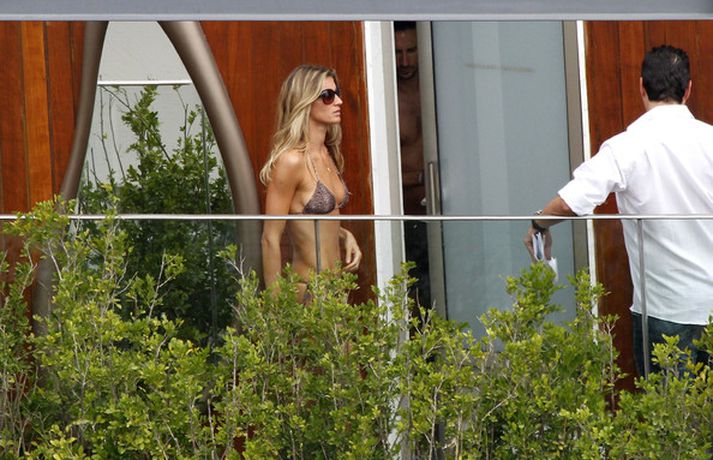 Brasilíska ofurfyrirsætan Gisele Bundchen, 30 ára, sleikti sólina í gær, í Rio de Janeiro í Brasilíu. Hún er stödd þar í borg ásamt fjölskyldu sinni, eiginmanni Tom Brady og syni sínum Benjamín, sem hún eignaðist fyrir 14 mánuðum.Eins og myndirnar sýna er nýbökuð móðirin í dúndurformi.
