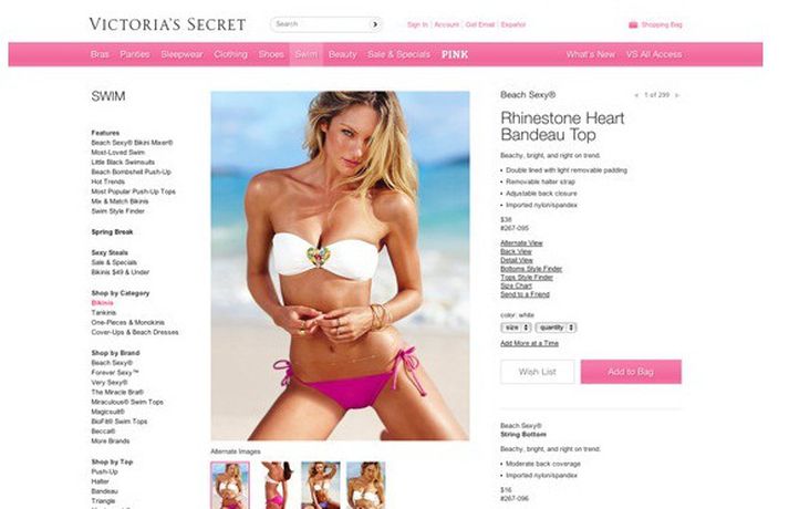 Í meðfylgjandi myndaalbúmi má greinilega sjá að vinstri síðan á fyrirsætunni Candice Swanepoel er í ólagi því búið er að afmynda hana svo vægt sé til orða tekið með aðstoð tölvutækninnar. Um er að ræða mynd af Victoria´s Secret baðfatalínu fyrir sumarið 2011.