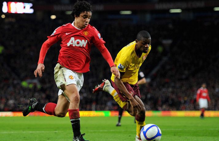 Manchester United er komið í undanúrslit í ensku bikarkeppninni eftir góðan sigur á Arsenal, 2-0, á Old Trafford. Þetta er í 27. skipti sem United kemst í undanúrslit í enska bikarnum og eiga því enn möguleika á að vinna tvöfalt í vor. Fabio Da Silva kom heimamönnum yfir á 28. mínútu. Waney Rooney átti frábæra sendingu á Javier Hernández sem skallaði að marki en Manuel Almunia varði vel. Fabio var hins vegar réttur maður á réttum stað og kom boltanum yfir línuna. Arsenal var meira með boltann í fyrri hálfleik en tókst ekki að skapa sér mörg hættuleg færi. Besta færi Arsenal í fyrri hálfleik átti Samir Nasri en hann átti gott skot undir lok fyrri hálfleiks sem Edwin van der Sar varði vel. Wayne Rooney tvöfaldaði forystuna fyrir heimamenn í upphafi síðari hálfleiks með hnitmiðuðum skalla. Rafael tók góðan sprett inn í teig Arsenal og átti sendingu fyrir markið sem varnarmenn Arsenal náðu ekki að hreinsa frá og Rooney skallaði boltann í netið. Arsenal reyndi hvað þeir gátu til að komast á blað en allar sóknarlotur þeirra strönduðu á van der Sar sem var sem klettur í marki heimamanna. Marouane Chamakh fékk líklega besta færi Arsenal en van der Sar varði skalla hans. Arsenal lék einum leikmanni færri síðustu mínúturnar eftir að svissneski varnarmaðurinn Johan Djourou varð að fara af velli vegna meiðsla en Arsene Wenger hafði þá nýtt allar þrjár skiptingarnar. Líklegt er að Djourou hafi farið úr axlalið og verður því frá keppni næstu vikurnar hið minnsta. Antonio Valencia snéri aftur í lið Man. United eftir nokkra mánaða fjarveru vegna meiðsla. Hann lék síðari hálfleikinn og styrkir lið United nokkuð á lokasprettinum á keppnistímabilinu.Man. United - Arsenal 2-0 1-0 Fabio (28.) 2-0 Wayne Rooney (49.)