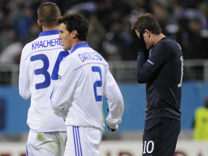 Roberto Mancini: Ég er mjög pirraður Óskar Ófeigur Jónsson skrifar 10. mars 2011 22:42 Edin Dzeko hjá Manchester City svekkir sig yfir glötuðu færi í leiknum í kvöld. Mynd/AP Roberto Mancini, stjóri Manchester City, var fúll eftir 0-2 tap liðsins í kvöld á móti úkraínska liðinu Dynamo Kiev í fyrri leik liðanna í sextán liða úrslitum Evrópudeildarinnar en leikurinn fór fram í frostinu í Kænugarði. „Leikurinn var góður og við spiluðum vel. Við gerðum hinsvegar tvö stór mistök sem kostuðu okkur tvö mörk. Það má ekki gera svona mistök í leik sem þessum," sagði Roberto Mancini. „Kiev er með gott lið en leikurinn hefði átt að fara 2-1. Þetta voru heimskuleg mörk sem við fengum á okkur. Við stjórnuðum leiknum en þeir beittu skyndisóknum. Ég er mjög pirraður," sagði Mancini. Evrópudeild UEFA Mest lesið Sjáðu geggjaðan snúning Alberts áður en hann skoraði frábært mark Fótbolti Bunting dró orð sín til baka með tárin í augunum: „Ég er ekki meistari fólksins“ Sport Sakaður um svindl á HM í pílukasti Sport Áhorfendur ærðust eftir mögulega mark mótsins í fyrsta leik Fótbolti Klappstýrur Björgvins Karls slógu í gegn Sport Táningur fær mikið hrós fyrir viðbrögð sín þegar mótherji missti meðvitund Fótbolti Óskar Hrafn um komu Arnórs Ingva: „Gífurlega dýrmætt fyrir KR“ Íslenski boltinn Stórstjarna úr WNBA-deildinni í heimsókn á Íslandi Körfubolti „Ef þið væruð Antoine Semenyo, hvert mynduð þið fara?“ Enski boltinn Ótrúleg tíðindi á HM í pílukasti: „Mikið sjokk“ Sport Fleiri fréttir Meira en 37 stöðugildi hjá Knattspyrnusambandi Íslands Táningur fær mikið hrós fyrir viðbrögð sín þegar mótherji missti meðvitund „Þetta mun ekki buga okkur“ Guardiola mun vigta leikmenn Man City eftir jólin „Ef þið væruð Antoine Semenyo, hvert mynduð þið fara?“ Freyr himinlifandi með íslensku strákana Sjáðu geggjaðan snúning Alberts áður en hann skoraði frábært mark Óskar Hrafn um komu Arnórs Ingva: „Gífurlega dýrmætt fyrir KR“ Áhorfendur ærðust eftir mögulega mark mótsins í fyrsta leik Sjáðu mörkin: Rogers sá um Manchester United Hleður Kjartan lofi eftir frábæra frumraun með Aberdeen Óttast að Isak hafi fótbrotnað Túfa gerir þriggja ára samning í Svíþjóð Arnór Ingvi orðinn leikmaður KR Albert skoraði í fyrsta sigri Fiorentina Bæjarar aftur á sigurbraut Tvenna frá Rogers tryggði Villa sigur gegn Manchester United Barcelona með fjögurra stiga forskot inn í nýtt ár Alvöru innkoma: Kjartan með stoðsendingu gegn Celtic í sínum fyrsta leik Sandra María hetjan og með þeim markahæstu í Þýskalandi Katla skoraði annan leikinn í röð Tómas Bent og félagar unnu Rangers og náðu átta stiga forskoti á toppnum Breiðablik kaupir Jónatan frá Norrköping Hildur áfram í bikarnum og Amanda enn á toppnum Fimmta sinn sem Arsenal er á toppnum um jólin: Unnu ekki titilinn í fyrstu fjögur skiptin „Viljum við að okkar verði minnst fyrir að vera skræfur?“ „Ef dómarinn hefði sinnt sínu starfi almennilega hefði Romero ekki fengið spjald“ Haaland gaf barnabarni Hareide gjöf Sjáðu mörkin úr enska: Sviptingar, sænskt þema og svakalegar tæklingar Madrídingar anda ofan í hálsmálið á Börsungum Sjá meira