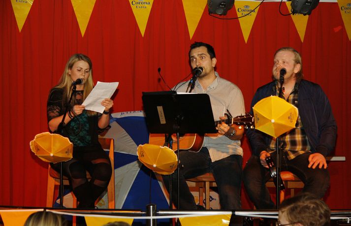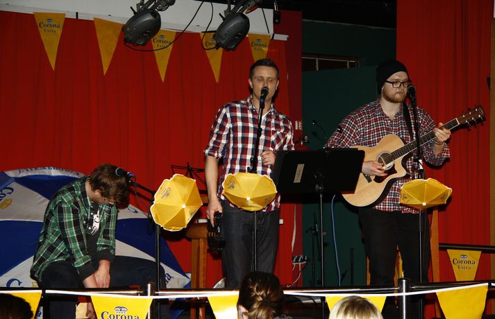 Meðfylgjandi myndir voru teknar á síðara undanúrslitakvöldinu í Trúbadorkeppni FM957 og Corona á Players í Kópavogi í gærkvöldi. Átta atriði voru skráð til leiks og var ljóst að samkeppnin yrði virkilega hörð enda mikið í húfi. Kvöldið opnaði þó á því að útvarpsfólkið í Tívolí þættinum á FM957 fóru á svið til að reyna heilla dómnefndina en það gekk ekki sem skyldi og má með sanni segja að reynsluleysi hafi orðið þeim að falli. Hin sjö atriðin stigu hinsvegar á svið hvert af öðru og voru allir keppendur einbeittu sér að því að heilla dómnefnd kvöldsins sem var skipuð þeim Hanna Bach trommuleikara Skímó, Haffa Haff tískumógul, Ísgerði Gunnarsdóttur leikkonu og Kristjáni Inga morgunhana í Svala & Félögum. Allir keppendur voru svo dyggilega studdir af stuðningsliðum sínum sem létu vel í sér heyra eins og sjá má á myndunum. Þegar uppi var staðið valdi fagleg dómnefnd kvöldsins þrjú atriði áfram í úrslitin en áhorfendur í sal fengu svo að velja eitt atriði til viðbótar sem var í uppáhaldi hjá þeim. Eins og meðfylgjandi myndir sýna var stemningin gríðarleg á Players. Atriðin sem fóru áfram voru:Andrés GunnarssonHjálmar Már KristinssonEinar Valur & Guðmann & Jón Valur (kalla sig 1+1)Helgi Þorvalds & Benedikt Þorgeirsson (val áhorfenda) Spennan verður því rafmögnuð fyrir úrslitakvöldið í Trúbadorkeppni FM957 og Corona sem verður haldið fimmtudaginn 14. apríl á Players. Þar munu öll átta atriðin keppa um þennan eftirsótta titil ásamt því að Bee On Ice, sigurvegarar keppninnar frá því í fyrra, ætla að taka lagið og afsala sér titlinum. Miðar eingöngu fáanlegir á FM957 í næstu viku.