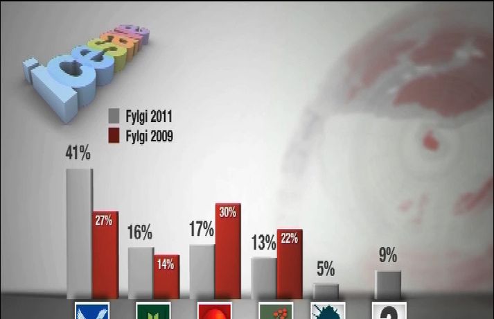 Framsóknarflokkur og Samfylking með svipað fylgi 6. apríl 2011 18:33 Formenn Sjálfstæðisflokks og Framsóknarflokks. Mynd/GVA Sjálfstæðisflokkurinn fengi 40% fylgi ef gengið yrði til þingkosninga í dag, ef marka má skoðanakönnun MMR. Framsóknarflokkurinn bætir við sig fylgi og mælist nú með 16%, Samfylkingin mælist með 17% fylgi, Vinstri græn með 12,8% og og Hreyfingin með 4,7%. 602 tóku þátt í könnunni en 64% þeirra tóku afstöðu. . Mest lesið „Nú ætla menn að kollvarpa þessu kerfi, fyrir hvað?“ Innlent Ekkert „en“ á eftir því að beita maka sinn ofbeldi Innlent Lögreglumenn náðu stjörnuhrapi á eftirlitsmyndavél Innlent Segist hafa fengið fjölda hótana eftir að Trump hætti að styðja hana Erlent Ræðst í úttekt á bókamarkaðnum Innlent Tryggja þurfi að ráðamenn hlaupi ekki í störf hjá ESB Innlent Lögregla leysti upp unglingapartý í Árbæ Innlent Sakar kaupendur um að hafa aldrei greitt fyrir veitingastaðina Innlent Telja íslenskuna geta horfið á einni kynslóð Innlent Flugvél lenti í Keflavíkur vegna bilunar Innlent Fleiri fréttir Telja íslenskuna geta horfið á einni kynslóð Evrópumál, lánakjör og baráttan fyrir íslenskri tungu í stafrænum heimi Lögregla leysti upp unglingapartý í Árbæ Ekkert „en“ á eftir því að beita maka sinn ofbeldi Lögreglumenn náðu stjörnuhrapi á eftirlitsmyndavél Ræðst í úttekt á bókamarkaðnum „Nú ætla menn að kollvarpa þessu kerfi, fyrir hvað?“ Flugvél lenti í Keflavíkur vegna bilunar Glæsilegir forystuhrútar á Syðra – Velli í Flóa Áköf undirskriftakeppni hafin vegna jarðganga Tryggja þurfi að ráðamenn hlaupi ekki í störf hjá ESB Vara við mögulegri glerhálku í kvöld „Kerfinu kollvarpað“, jólabókaflóð og forystusauðir Höfðu eftirlit með fangageymslu lögreglu Sakar kaupendur um að hafa aldrei greitt fyrir veitingastaðina Missir úr skóla og tekur ekki þátt í félagslífi eftir að vökvagjöf var hætt Óttast áhrifin sem frumvarpið geti haft á Landspítalann Óslóartréð fellt í Heiðmörk Ósáttur með viðbrögð Barna- og fjölskyldustofu Göngugarpar munu mynda Ljósafoss niður Esjuna Eftirlit í skötulíki, Trump hótar málsókn og Ljósafossgangan Minni tekjur góðar fréttir Ölvun og hávaði í heimahúsi Misskilningur um losunarmarkmið „stórkostlegur áfellisdómur“ „Þetta er hættulegt ef við viljum áfram búa í frjálslyndu lýðræðissamfélagi“ Auka sýnileika milli rýma á leikskólum „Algjört vandræðamál og sorglegt“ Þau eru nýir talsmenn fatlaðs fólks á þingi Herja á umsækjendur um alþjóðlega vernd Hælisleitendur og börn í auknum mæli notuð sem burðardýr Sjá meira