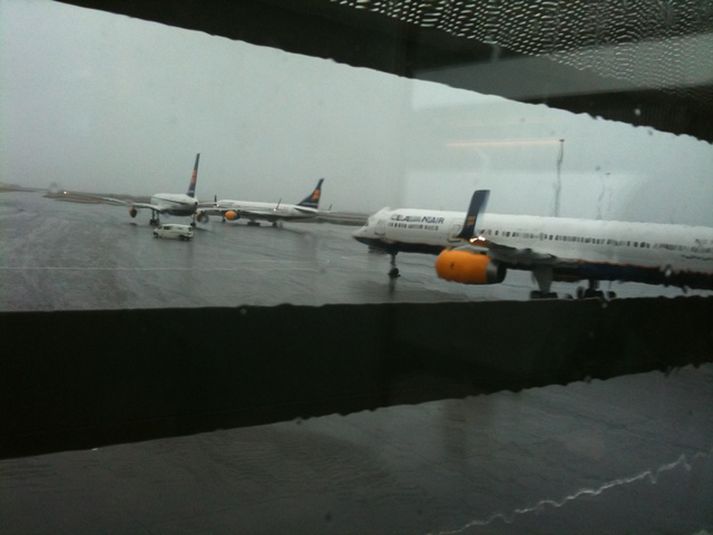 Gætu þurft að sitja í nokkra tíma í vélunum Jón Hákon Halldórsson skrifar 10. apríl 2011 18:01 Farþegar eru fastir í fjölmörgum vélum á Keflavíkurflugvelli. Mynd/ Daði Guðjónsson. Hugsanlegt er að ekki verði hægt að reyna að hleypa farþegum, sem sitja fastir í flugvélum á Keflavíkurflugvelli, út úr vélunum fyrr en klukkan níu í kvöld, samkvæmt upplýsingum frá Isavia. Þó verður reynt fyrr ef mögulegt er. Vegna vonskuveðurs hafa farþegar ekki komist inn í flugstöðina úr flugvélunum í gegnum landganginn. Farþegar sitja því fastir inn í tíu vélum á Keflavíkurflugvelli. Vonskuveður er um allt suðvesturland og á Reykjanesi. Lögreglan biður fólk sem er á ferli að fara varlega. Mest lesið Virðist ekki vera hægt á Íslandi Innlent Hiti geti mest náð átján stigum Veður Hyggst kæra dyraverði Auto til lögreglu Innlent „Ótrúlega sorglegt að pabbi sé búinn að vera svona lengi í þessari stöðu“ Innlent Ný könnun Maskínu: „Væri alveg ný staða í íslenskum stjórnmálum“ Innlent Gaf fingurinn á Miklubraut Innlent Stytting framhjá Blönduósi ekki á samgönguáætlun Innlent „Ég hef aldrei upplifað annan eins harm“ Innlent Breiddi út faðminn fyrir rasista: „Þið þurfið ekki að biðjast afsökunar á að vera hvít lengur“ Erlent „Bandaríkin eiga ekki að taka yfir Grænland“ Erlent Fleiri fréttir Virðist ekki vera hægt á Íslandi Stytting framhjá Blönduósi ekki á samgönguáætlun Vestmannaeyingar fá að eiga Vestmannaeyjar Hyggst kæra dyraverði Auto til lögreglu „Ótrúlega sorglegt að pabbi sé búinn að vera svona lengi í þessari stöðu“ Höfðu samband við dönsku herstjórnina á Grænlandi Ný könnun Maskínu: „Væri alveg ný staða í íslenskum stjórnmálum“ Glæný Maskínukönnun og jólaóveður Ársæll hringdi beint í utanríkisráðherra eftir fundinn Ósannað að fimmtán ára stúlka hafi stungið sextán ára pilt tvisvar Sameina Farice, Öryggisfjarskipti og hluta Neyðarlínunnar Gaf fingurinn á Miklubraut Birtir drög að lögum um lagareldi: Hyggst leggja niður Fiskeldissjóð Hundrað og fjörutíu milljarða bótakrafa á Samherja sé súrrealísk Skemmdir í kirkjugörðum vegna aksturs utan vegar Ólýsanlegur harmur fyrir fjölskylduna og söfnun hleypt af stokkunum „Ég hef aldrei upplifað annan eins harm“ Vill leiða lista Sjálfstæðismanna í Reykjanesbæ „Þetta hefur verið þungur tími“ Naut aðstoðar samskiptasérfræðinga vegna veiðigjaldamálsins Hrindir af stað söfnun fyrir móður stúlkunnar sem lést í Suður-Afríku Varð vitni að ótrúlegum norðurljósum: „Mér fannst þetta magnað“ Færir nýársboðið fram á þrettándann Fjórir fluttir á sjúkrahús eftir bílveltu á Suðurlandi Leggur aftur til hverfislögreglustöð í Breiðholti Nú má heita Love, Tóní, Ranimosk og Draumur Kvartar til umboðsmanns og vonar að Vegagerðin sjái að sér Ætlar ekki að beita sér í máli starfsmanns Útlendingastofnunar „Ég vil ekki nokkurn tímann sjá neitt svona aftur“ Gyðingar á Íslandi upplifa aukinn ótta Sjá meira