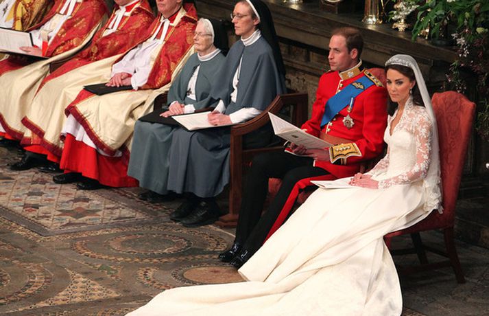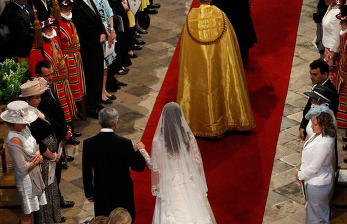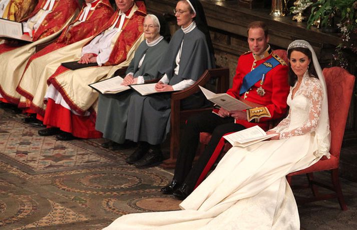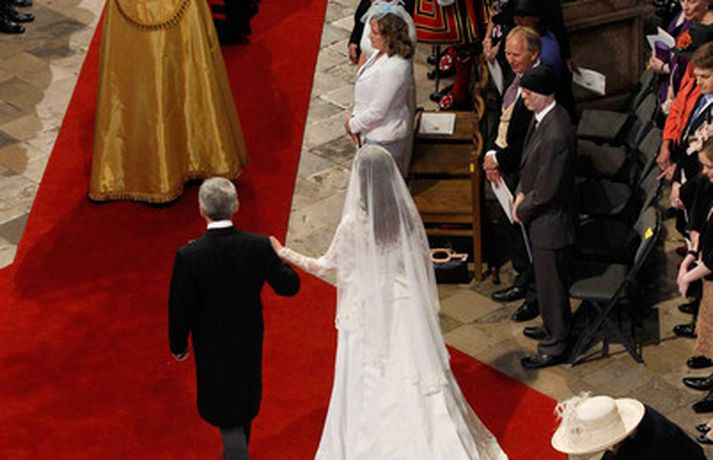 Prinsessan yfirveguð við altarið 29. apríl 2011 12:42 MYNDIR/Cover Media Myndir sýna greinilega að prinsessan Katrín Middleton var áberandi yfirveguð, eins og hún hefði ekki gert neitt annað um ævina en að giftast konungbornum manni, þegar hún gekk að eiga Vilhjálm bretaprins í Westminster Abbey í dag. Þú ert gullfalleg, sagði Vilhjálmur við Katrínu þegar faðir hennar, Michael Middleton, var um það bil að gefa honum hönd dóttur sinnar. Mest lesið Íslenska stelpan sem gerðist mormóni Lífið Frægir fundu ástina 2025 Lífið „Við erum öll dauð hvort sem er“ Lífið „Við byrjuðum að hlusta á jólalög í júlí“ Lífið „Ég heyrði þá kalla á mig en gat engu svarað“ Lífið Best klæddu Íslendingarnir 2025 Tíska og hönnun Bandalag listamanna lýsir yfir stuðningi við Dóru Menning Fréttatía vikunnar: Rob Reiner, Dóra Björt og fullir unglingar Lífið Útgefandi Walliams lætur hann róa Lífið 500 Esjuferðir á árinu: „Sumir hrista bara hausinn og lygna augunum“ Lífið Fleiri fréttir „Við byrjuðum að hlusta á jólalög í júlí“ Frægir fundu ástina 2025 Íslenska stelpan sem gerðist mormóni „Við erum öll dauð hvort sem er“ Fréttatía vikunnar: Rob Reiner, Dóra Björt og fullir unglingar 500 Esjuferðir á árinu: „Sumir hrista bara hausinn og lygna augunum“ Útgefandi Walliams lætur hann róa Fáklæddir barþjónar þegar Regnboginn opnaði í Bíó Paradís Þriðja stigs krabbameinið það besta sem kom fyrir hann Dúnninn bakaður í fjóra sólarhringa til að drepa allt í honum Heilsu krónprinsessunnar hrakar gríðarlega Pete orðinn pabbi Nýkominn úr meðferð og „sjaldan verið betur nýsleginn túskildingur“ Laufey á lista Obama „Ég heyrði þá kalla á mig en gat engu svarað“ Opnar sig í fyrsta sinn: Kyssti yfirmanninn í fyrsta sinn þetta kvöld Sex hundruð ára kastali Björns í Frakklandi svo gott sem klár Fyrirsát að Valgerði, Stund Pírata og meint alzheimer Þráins Bertelssonar „Það jafnar sig enginn eftir svona og við munum aldrei gera það“ Ungir sjálfstæðismenn gefa út vandræðalegt fjölskyldudagatal Keough sögð líffræðileg móðir Benjamin Travolta Rússland aftur í Eurovision - undirskriftasöfnun Óskarsverðlaununum streymt á Youtube Karmað muni bíta þjófinn í rassinn þegar títan og glyttan byrja að dansa í hitanum Hreimur og Ólafur Darri perluvinir sem horfa á enska boltann saman „Ég er mamman sem gat aldrei gefið honum það sem hann óskaði sér“ Áttu að hitta Reiner-hjónin daginn örlagaríka Leynigesturinn hitti Heimi Karls beint í hjartastað Sannkölluð útsýnisperla með potti í Skerjafirði Kristófer Acox og Guðrún Elísabet eiga von á barni Sjá meira