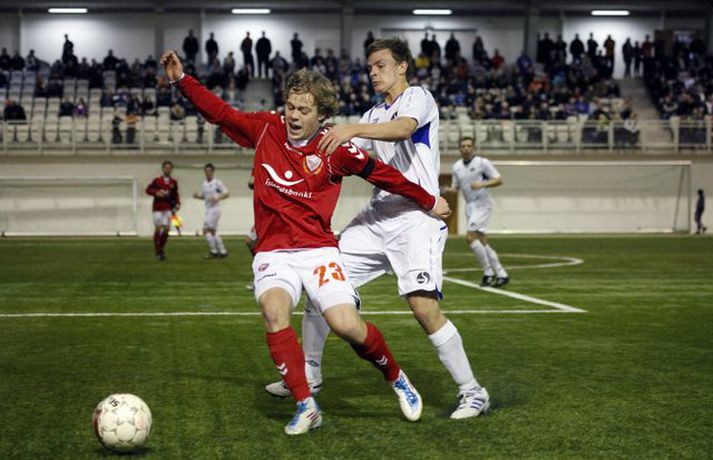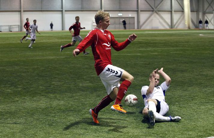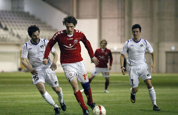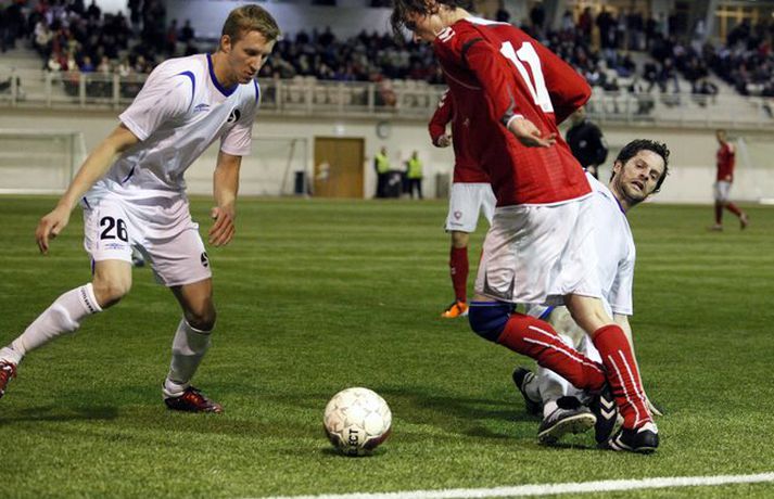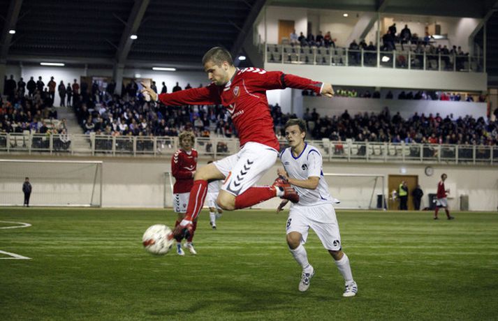 Valur vann báða titlana í vetur Eiríkur Stefán Ásgeirsson skrifar 26. apríl 2011 08:00 Valsmenn urðu í gær Lengjubikarmeistari í knattspyrnu eftir sigur á Fylki, 3-1, í framlengdum úrslitaleik. Valur varð einnig Reykjavíkurmeistari fyrr í vetur og vann því báða titlana á undirbúningstímabilinu. Leikurinn fór fram í Kórnum í Kópavogi í gær og byrjuðu Fylkismenn betur. Þeir komust yfir í fyrri hálfleik en Valsmenn sóttu í sig veðrið í þeim síðari og jöfnuðu áður en venjulegum leiktíma lauk. Þeir skoruðu svo tvívegis í framlengingunni og tryggðu sér þar með sigurinn. Stefán Karlsson, ljósmyndari Vísis og Fréttablaðsins, var á leiknum og tók þessar myndir.Guðjón Pétur Lýðsson skoraði fyrir Val í gær.Mynd/Stefán Pepsi Max-deild karla Mest lesið Þessi tíu eru tilnefnd sem Íþróttamaður ársins 2025: 23 ára aldursmunur Sport Sakaður um niðurlægingu: „Við viljum ekki hafa hann sem þjálfara“ Handbolti Erfitt að vera í burtu þegar mamma greindist Fótbolti Einn leikmaður með samning og völlurinn ólöglegur Fótbolti Áfallið staðreynd og Isak búinn í aðgerð Enski boltinn Vildi tapa legg: „Mesti hávaði sem ég hef heyrt“ Sport Slot mun sakna Isak í tvo mánuði eftir „glórulausa tæklingu“ Enski boltinn Missti alveg stjórn á skapinu en það skilaði sigri Körfubolti Salah færði Egyptum draumabyrjun Fótbolti Kansas frá Kansas til Kansas Sport Fleiri fréttir Meira en 37 stöðugildi hjá Knattspyrnusambandi Íslands Óskar Hrafn um komu Arnórs Ingva: „Gífurlega dýrmætt fyrir KR“ Arnór Ingvi orðinn leikmaður KR Breiðablik kaupir Jónatan frá Norrköping Elías mættur til meistaranna KR sagt vera að landa Arnóri Ingva Hilmar Árni til starfa hjá KR Segir fjórðung í bók Óla ósannan Víkingur í úrslit Bose-bikarsins eftir sigur „Verið heiður að spila í appelsínugulu með frábærum liðsfélögum“ Þekkir Egilshöllina vel og skoraði gegn fyrrum félögum Strákar Heimis Guðjóns fengu slæman skell í fyrsta leik Axel verður áfram hjá Aftureldingu Kveður pabba sinn í Laugardalnum og fer til FH „Félag sem var í basli með að ná endum saman og greiða laun á réttum tíma“ Skrýtið og taktlaust: „Ég er ekkert sátt með niðurstöðuna“ Fanndís kveður sviðið: „Ég er búin að fella nokkur tár“ Gylfi með tvö og Víkingar byrja á sigri Frá Akureyri til Danmerkur Markadrottningin heldur að landsliðið sé búið spil Strákarnir í 2. flokki Vals þeir einu sem ekki spila fyrir áramót Dæturnar vildu norður: „Mun alltaf gera allt fyrir þær“ Stjarnan sækir markvörð í 3. deildina „Ég var orðinn algjörlega bugaður“ Jónatan áfram á Hlíðarenda: „Var alltaf jákvæður fyrir því að framlengja“ Óli Jó kallar ráðninguna á Jóa Kalla algjört bull „Ég elska þig Ísland, takk fyrir allt!“ Sextán ára með fernu fyrir meistara Víkings Valur dregur sig úr Bose-bikarnum „Sagði bara við hann: Djöfulsins fíflið þitt“ Sjá meira