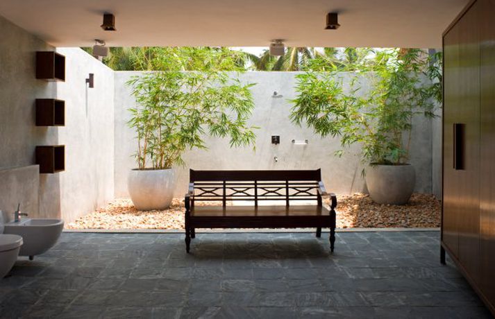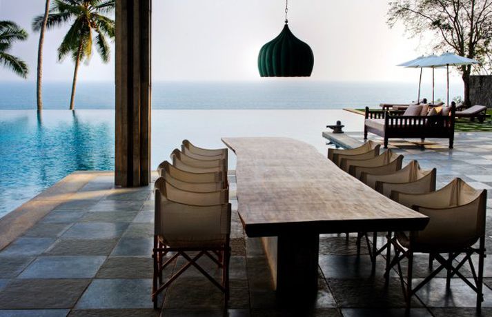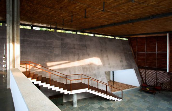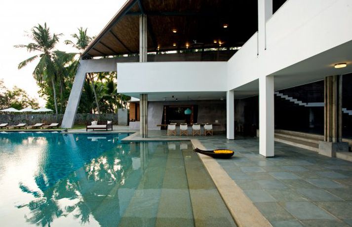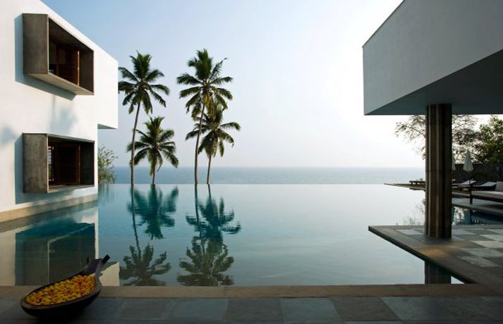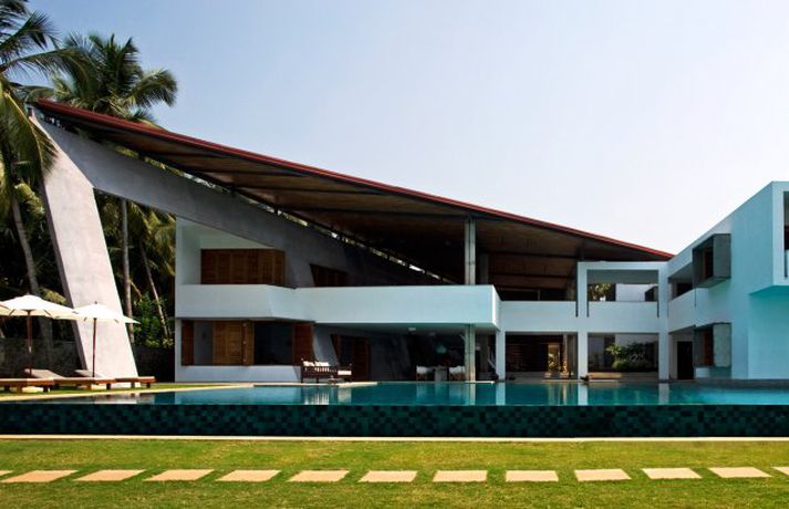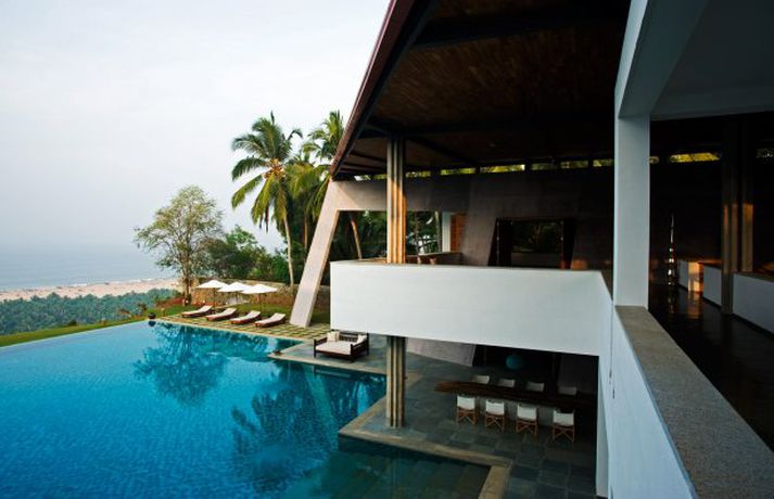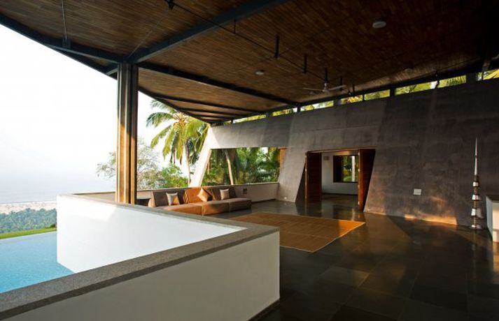 Þetta framandi hús stendur við lítið fiskiþorp á suðurströnd Indlands og er sumarhús fjölskyldu sem býr í London. Þetta er drauma sumarleyfisstaður þeirra sem kjósa framandi fallega staði sem túristahópar hafa enn ekki fundið. Arkítektarnir hjá Khosla hönnuðu húsið með það í huga að íbúarnir gætu notið útsýnisins 180 gráður yfir fagur blátt hafið á þessum einstaka stað. Byggingin hvílir að mestu á fjórum veggjum sem standa fyrir opnum rýmum í allar áttir sem er ætlað að skapa næmni hússins fyrir loftslagi hitabeltisins. Þakið er útpælt í þeim tilgangi að hlífa húsinu og íbúum þess sem best við sterkri sólinni úr vestri og regntímabilinu sem gengur reglulega yfir svæðið. Innra rýmið er hannað með það í huga að skapa loftflæði frá hafinu í gegnum öll rými byggingarinnar. Til þess að skapa gott loftflæði í gegnum húsið voru hannaðir sérstakir tréflekar inn í húsið til þess að hafa mætti stjórn á því hvernig golunni frá hafinu er beint í gegnum rýmin.Hver myndi ekki vilja eyða sumarfríi drauma sinna í þessu sérstaka húsi við strendur suður Indlands sem endurspeglar menningu staðarins?