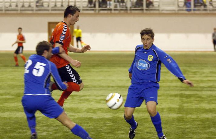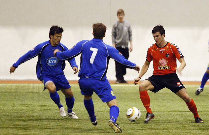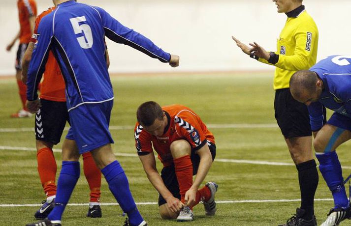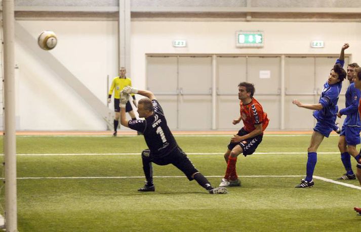 Dramatík í innanhúsboltanum Eiríkur Stefán Ásgeirsson skrifar 3. maí 2011 06:00 Grindavík sneri vonlausri stöðu sér í hag er liðið vann 3-2 sigur á Fylki í Kórnum í Kópavogi en þá fór fram fyrsti leikur í efstu deild karla innan dyra. Fyrsta mark Íslandsmótsins í ár var skorað í leiknum en Fylkir komst tveimur mörkum yfir í fyrri hálfleik. Grindavík náði þó að minnka muninn rétt áður en flautað var til leikhlés en liðið skoraði svo tvívegis í síðari hálfleik og tryggði sér sigur. Sigurmarkið kom í uppbótartíma. Anton Brink, ljósmyndari Vísis og Fréttablaðsins, tók þessar myndir.Mynd/Anton Pepsi Max-deild karla Mest lesið „Örugglega nokkrir Fantasy-þjálfarar ósáttir“ Enski boltinn „Haaland er þetta góður“ Enski boltinn Tilþrif 5. umferðar: Jukic stal senunni Körfubolti Kærastan tók eftir því að eitthvað var að Handbolti Lygilega jafnt á toppnum eftir sigur AC Milan Fótbolti „Það verður hundleiðinlegt að spila við Val“ Íslenski boltinn Ítalinn hoppaði upp fyrir Alcaraz eftir sigur í París Sport Uppgjörið: Þýskaland - Ísland 29-31 | Svöruðu skellinum með frábærum sigri Handbolti Ólíkar niðurstöður hjá landsliðsmönnunum Körfubolti Hermann tekinn við Val Íslenski boltinn Fleiri fréttir „Það verður hundleiðinlegt að spila við Val“ Hermann tekinn við Val Fóru nýja leið í ár og auglýstu eftir þjálfara: Tommy Nielsen ráðinn Pablo og Óskar Örn inn í þjálfarateymi Hauka FH-ingar kveðja Kjartan Henry Tölur úr Bestu: Bjartur Bjarmi fór í flestar tæklingar af öllum Gísli semur við Skagamenn Óskar Smári tekur við Stjörnunni Bretinn ráðinn tæknilegur ráðgjafi hjá Val Fram þvertekur fyrir metnaðarleysi og leitar að nýjum þjálfurum Tölur úr Bestu: Hallgrímur Mar bjó til langflest færi „Mjög sáttur með samninginn“ „Hefði séð eftir því alla ævi“ Magnús Már í viðræðum við HK Uppgjörið: Ísland - Norður-Írland 3-0 | Áfram hluti af elítunni Tölur úr Bestu 2025: Klúðraði langflestum dauðafærum í sumar FH bíður með að tilkynna nýjan þjálfara Óskar Hrafn fer ekki fet Birnir frá Akureyri í Garðabæ Hættir með Fram Heimir kynntur til leiks í Árbænum Túfa rekinn frá Val Leyndarmáli ljóstrað upp þegar Heimir og Björn kvöddu Leikmenn kusu Patrick og Guðmund Sjáðu bananabombu Antons Loga og önnur síðustu mörk tímabilsins Uppgjörið: Stjarnan - Breiðablik 2-3 | Stjarnan í Evrópu þrátt fyrir tap „Held að ég geti ekki gert mikið meira“ Uppgjörið: Vestri - KR 1-5 | KR bjargaði sér og sendi Vestra í Lengjudeildina Uppgjörið: ÍA - Afturelding 1-0 | Afturelding staldraði stutt við í efstu deild Uppgjörið: Víkingur - Valur 2-0 | Meistararnir klára tímabilið með stæl Sjá meira