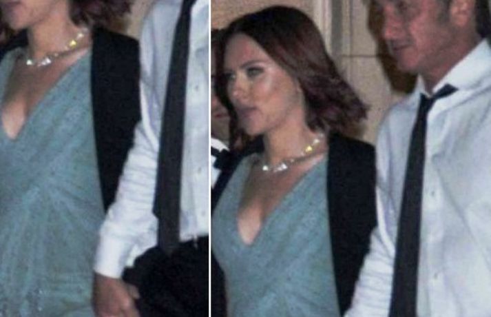 Bandaríska leikkonan Scarlett Johansson og unnusti hennar leikarinn Sean Penn leiddust hönd í hönd um helgina eins og sjá má á myndunum. Ástin á milli þeirra fer ekki á milli mála en þau blása hinsvegar á sögusagnir þess efnis að hún gangi með barnið hans. Bandarískir slúðurmiðlar hafa mikið verið að velta þessu fyrir sér eftir að mynd birtist af leikkonunni úti að skokka og breiðari um sig miðja en gengur og gerist.