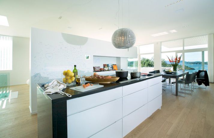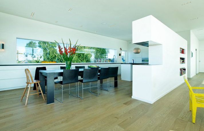 Skandinavískt fjölskylduhús 13. maí 2011 10:17 Villa G eins og þetta hús er kallað er frá árinu 2009. Þetta er nútímalegt og skemmtilegt fjölskyldhús í bænum Hjellestad nálægt Bergen í Noregi. Húsið hefur framúrstefnulegt form en er byggt úr efnum sem hafa verið einkennandi fyrir skandinavískan arkítektúr og byggingahefð. Húsið sem er 368 fermetrar er hannað af arkítektastofunni Saunders í Noregi. Húsið er hugsað sem barnvænt fjölskylduhús þar sem allir geta notið rýmisins. Þar sem lofthæðin er mest er klifurveggur þar sem fjölskyldan getur leikið sér í Spiderman leikjum og skriðið upp lóðréttan vegginn. Hönnuðurinn hressir upp á rýmið með fjölskrúðugu litavali í húsgögnum og innréttingum. Gólfefnin eru harðgerð sem bíður börnunum upp á kapphlaup á línuskautum. Mest lesið Eitt glæsilegasta hús Reykjavíkur til sölu Lífið Hvað þýðir „six-seven“? Lífið Vafðist tunga um tönn þegar Bond bar á góma Bíó og sjónvarp Meðalmennskan plagar Brján Gagnrýni Aldrei of seint að prófa sig áfram Tíska og hönnun Kynslóðabilið kom í ljós þegar umræðan beindist að blautbolakeppni Lífið Hótelstjóri Hótels Tindastóls er allur Bíó og sjónvarp Skein skært í sögulegum gleðikonukjól Tíska og hönnun Sjóðheitt fyrir snjóstorm Tíska og hönnun Smáforrit til að deila heimilisverkum: „Fæ þrjú stig fyrir að þurrka af á heimilinu“ Lífið Fleiri fréttir Sjóðheitt fyrir snjóstorm Skein skært í sögulegum gleðikonukjól Aldrei of seint að prófa sig áfram Dannaðar dömur mættu með dramað „Nú dýrka ég að vera vaxin eins og fæðing Venusar“ Hiti í Hringekjunni Virtist hvorki geta séð né andað Sænskur og sjóðheitur undir áhrifum BDSM Kasóléttur forystusauður, ungstirni og engilfagrar kanónur „Bíður bara inni í skáp eftir brúðkaupinu“ Betra sem hárbindi en tagl í Bríeti Léti aldrei sjá sig í ökklasokkum Gelluorkan í hæstu hæðum hjá Ginu Heitir pabbar í hlaupaklúbbi Skilnaðar-toppur í París Fann ástina í örlagaríkum kjól Íslensk fyrirsæta slær í gegn á tískupöllum Mílanó Kláraði lögfræði meðan hún sat fyrir hjá Dior Heitasta handatískan í dag Íslenski hönnuðurinn sem Dorrit dýrkar Með sálfræðigráðu á leið í skartgripahönnun í Róm Heklaði á sig forsýningarkjólinn Sjóðheit stemning á rauða dreglinum Ástin sigrar í nýrri herferð gegn ofbeldi Í þrjátíu ára gömlum fötum af mömmu Tískan við þingsetningu: Þjóðlegur þriðjudagur Rokkar pils sem bol og snýr flíkum öfugt Fögnuðu Þjóðbúningadeginum með stæl Fáklædd og flott á dreglinum „Hugsa fallega til stelpunnar sem ég var þá“ Sjá meira
