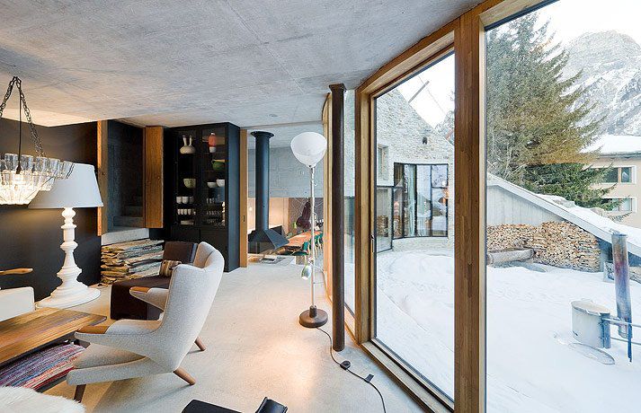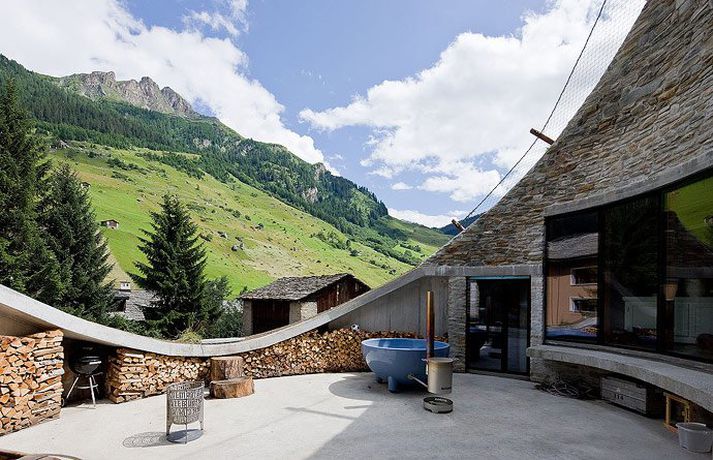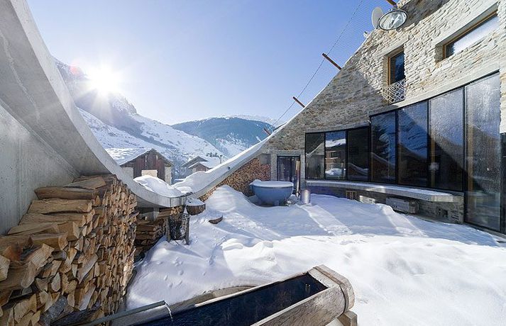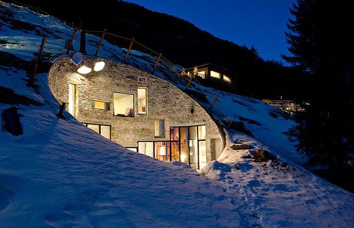 Meðfylgjandi má sjá myndir af einstöku húsi sem er staðsett í svissnesku Ölpunum. Húsið þykir merkilegt fyrir þær sakir að það er staðsett í fjallshlíð. Eins og sjá má á myndunum er útsýnið mikilfenglegt, dagsbirtan fær að njóta sín og rýmið vel nýtt.
