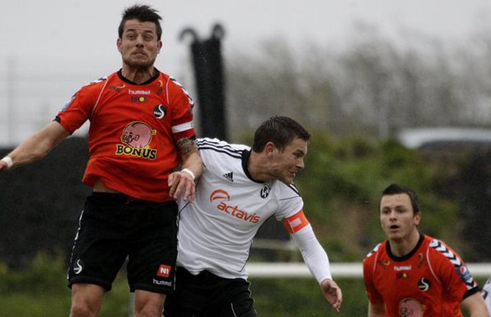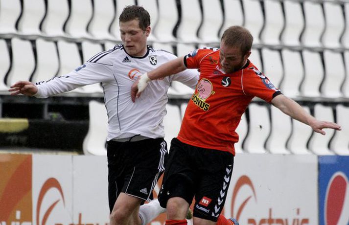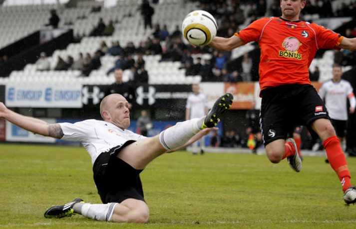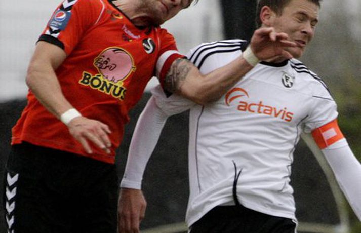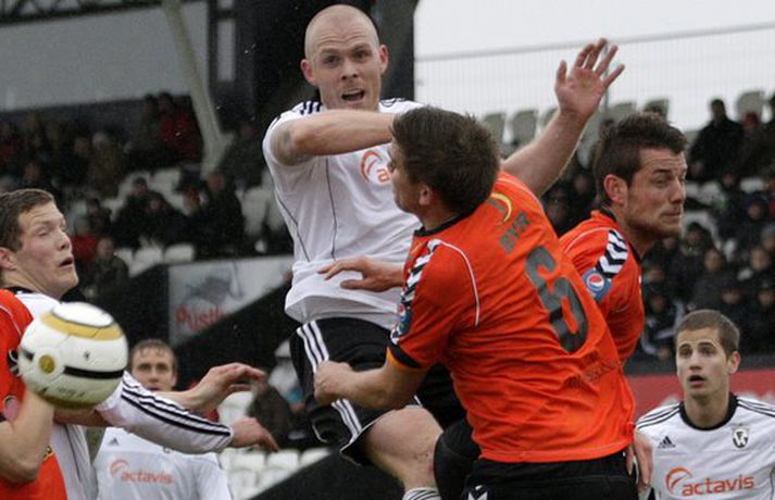 FH lenti tvívegis undir gegn Fylki í 32-liða úrslitum Valitors-bikarkeppni karla en vann svo 3-2 sigur í framlengdum leik. Pétur Viðarsson, Hannes Þ. Sigurðsson og Freyr Bjarnason skoruðu mörk FH-inga í loknum en það var sá síðastnefndi sem skoraði sigurmarkið dýrmæta í framlengingunni. Gylfi Einarsson og Albert Brynjar Ingason skoruðu mörk Fylkismanna í leiknum en þeir eru nú fallnir úr leik í bikarnum. FH-ingar verða hins vegar í hattinum þegar dregið verður í sextán liða úrslitin í hádeginu í dag. Valgarður Gíslason, ljósmyndari Vísis og Fréttablaðsins, var á vellinum og tók þessar myndir.Mynd/Valli