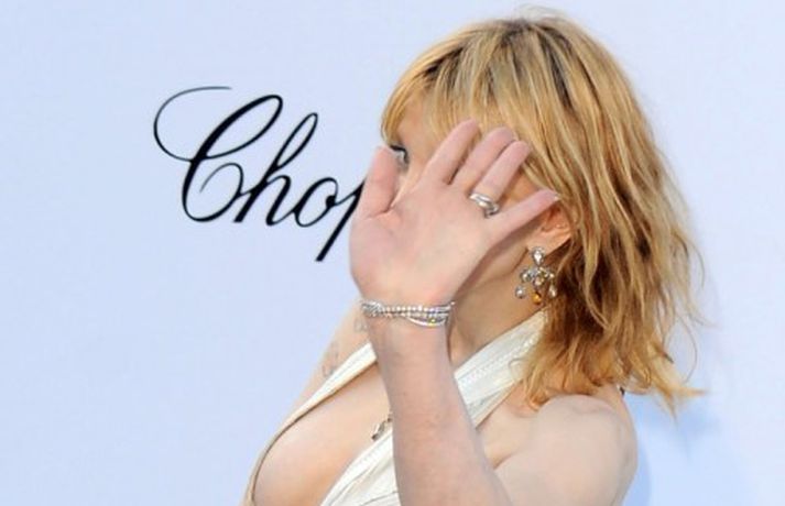 Meðfylgjandi myndir voru teknar af söngkonunni Courtney Love á góðgerðarsamkomu í Cannes í gær. Kjóllinn sem hún klæddist fór ekki fram hjá nokkrum einasta kjafti á svæðinu en hann má skoða betur í myndasafni.MYNDIR/Cover Media
