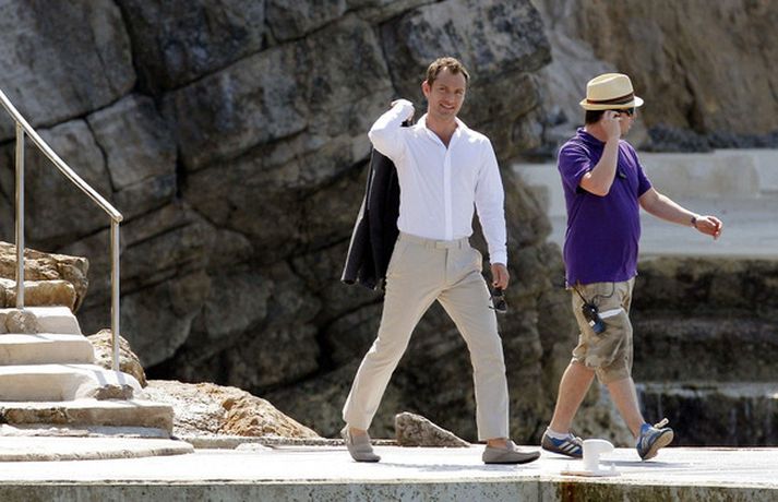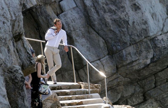 Breski leikarinn Jude Law, 38 ára, var staddur í Frakklandi yfir helgina þar sem tökur á nýrri auglýsingu fyrir Dior karlailm fóru fram. Jude, sem lét fara vel um sig á spíttbát ásamt ungri konu, hefur undanfarin ár auglýst Dior vörur. Þá kældi leikarinn sig niður klæddur í gula sundskýlu eins og sjá má í myndasafni.